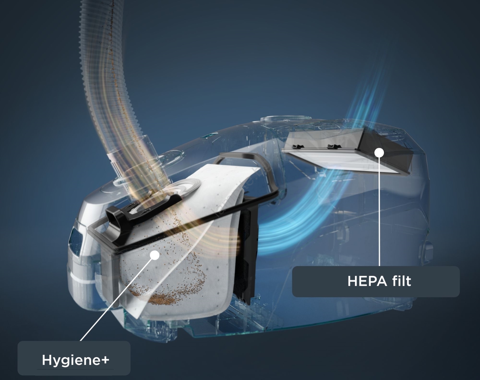 • Благодарение на HEPA филтрация (мин. 99,98 %) е идеален за домакинства с алергии.