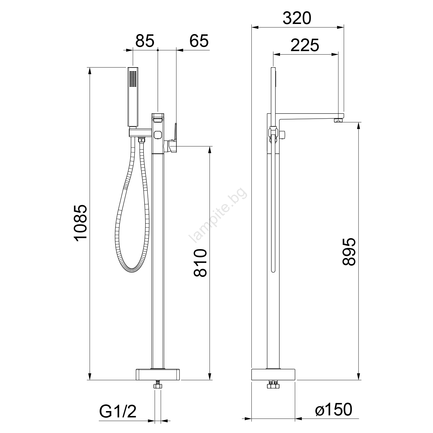 • Този ванен смесител е проектиран за подово монтиране.