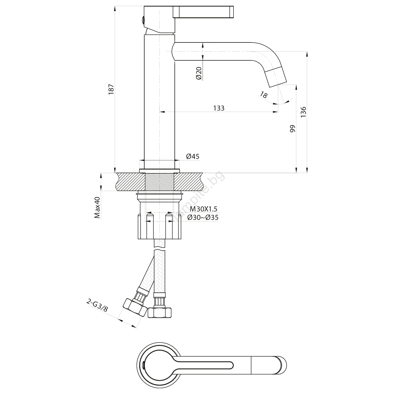 • Отводнителят не е включен в комплекта.