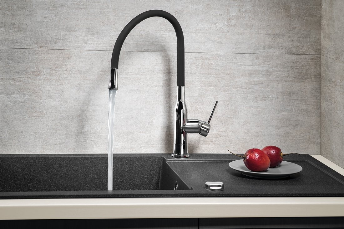 • Едноръкохватков смесител за кухня с високо налягане и въртящо се рамо.