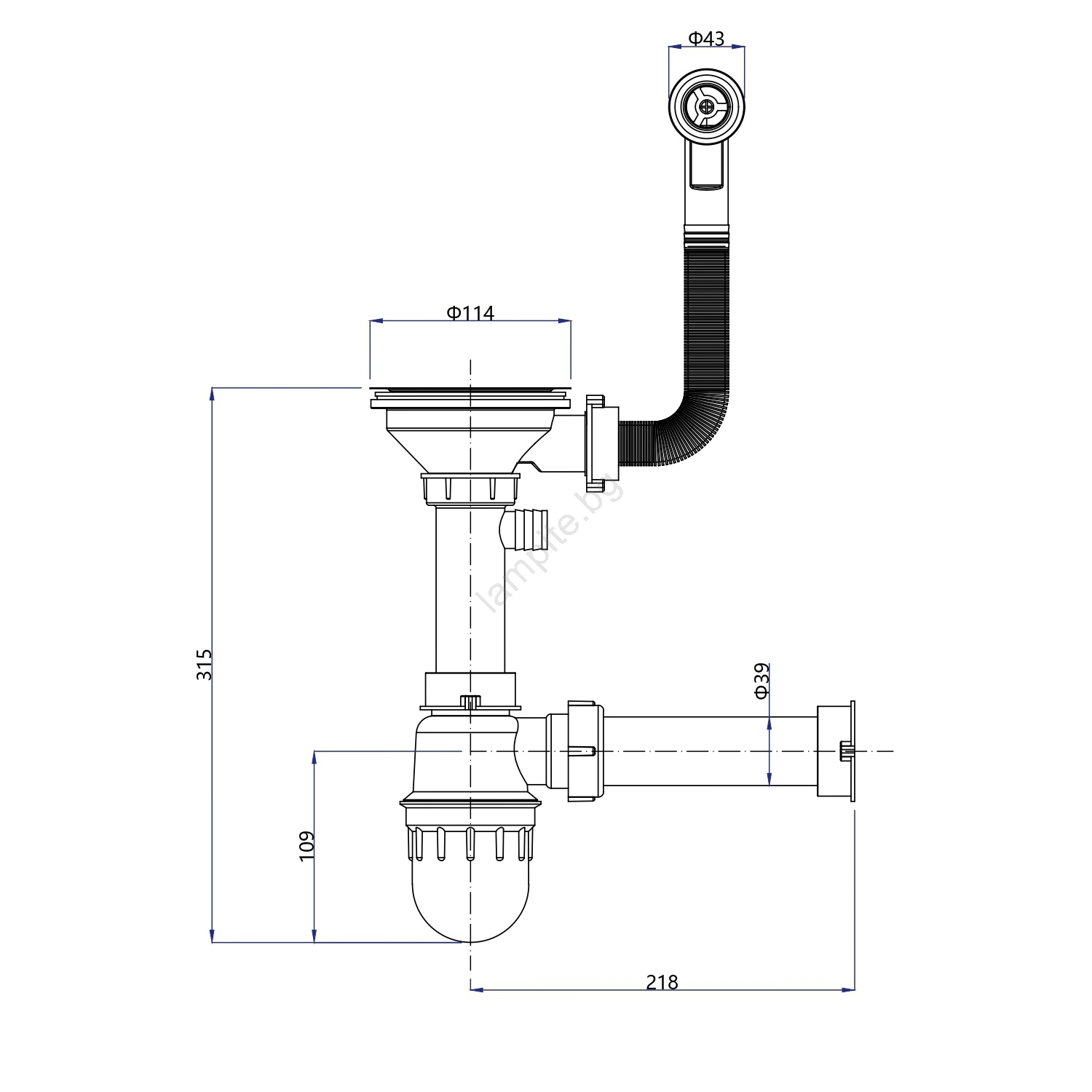 • Предназначена е за горен монтаж и включва кошнична тапа със сифон.