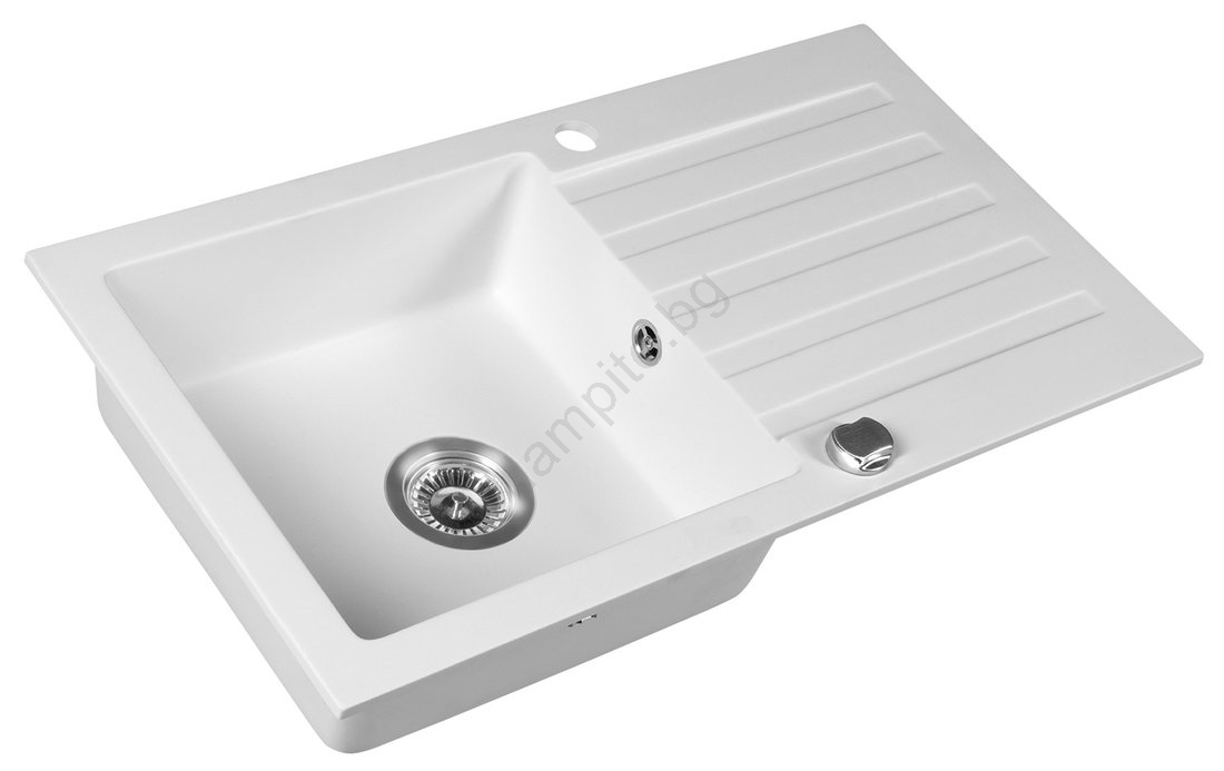 • Мивката е изработена от гранит и е в елегантен бял цвят.