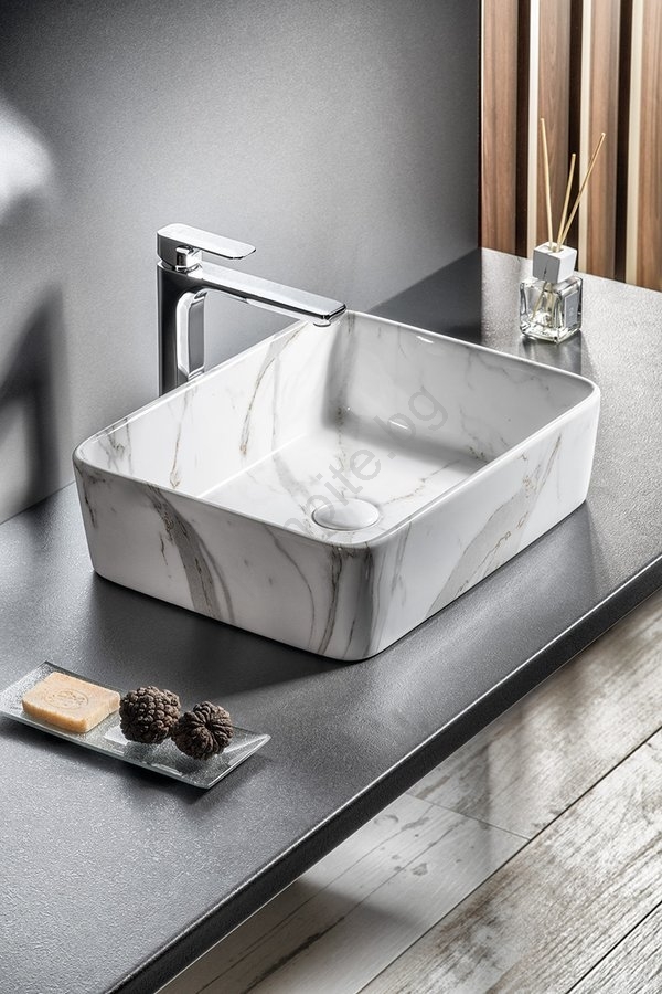 • Керамична мивка за поставяне върху плот с каменен ефект.
