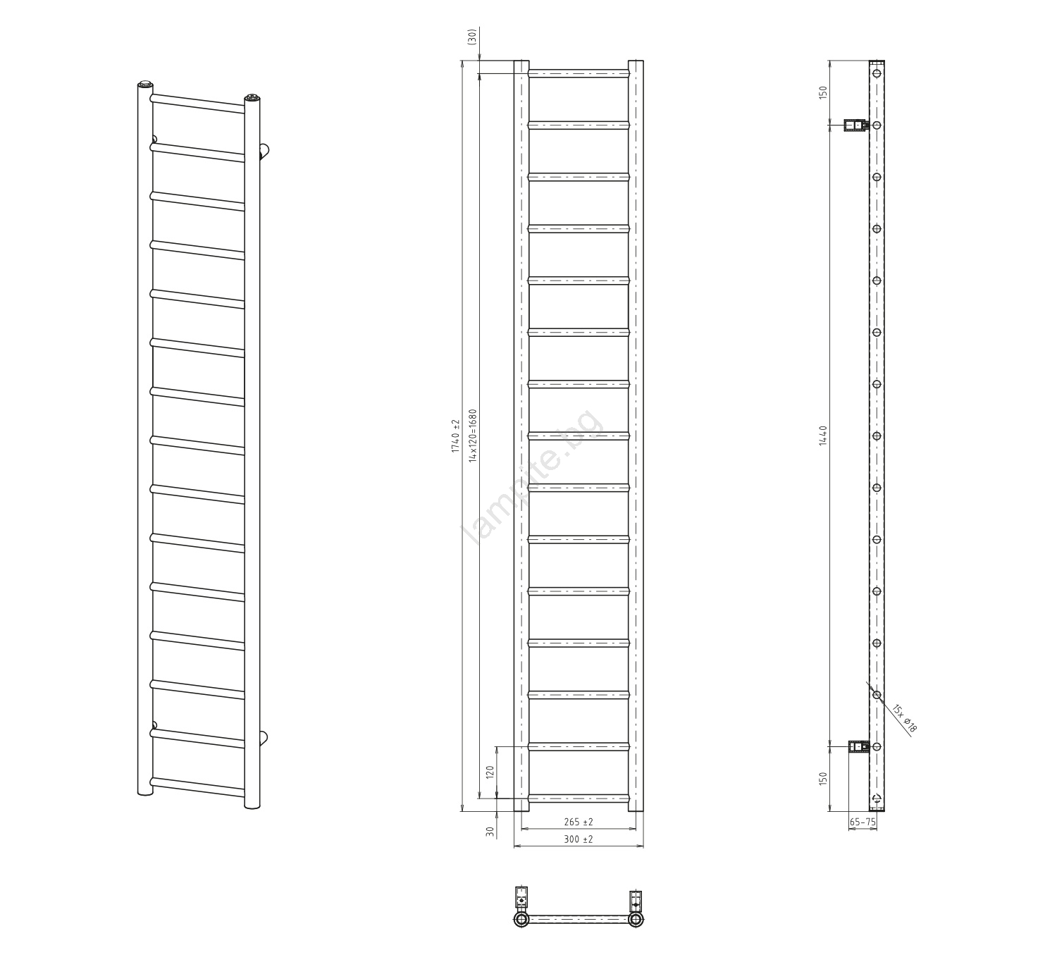 Sapho - Радиатор за баня DINA 335W 30x174 см матов черен
