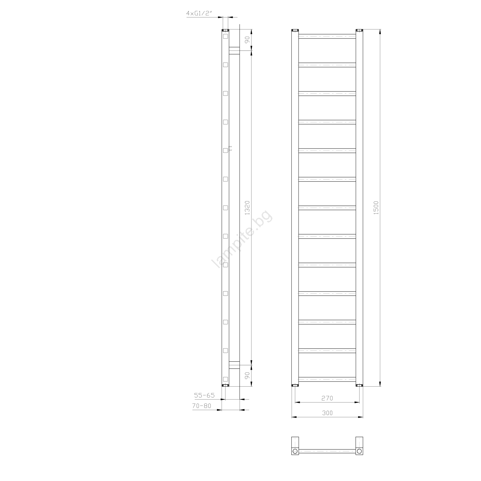 Sapho - Радиатор за баня METRO LIGHT 276W 30x150 cm бял