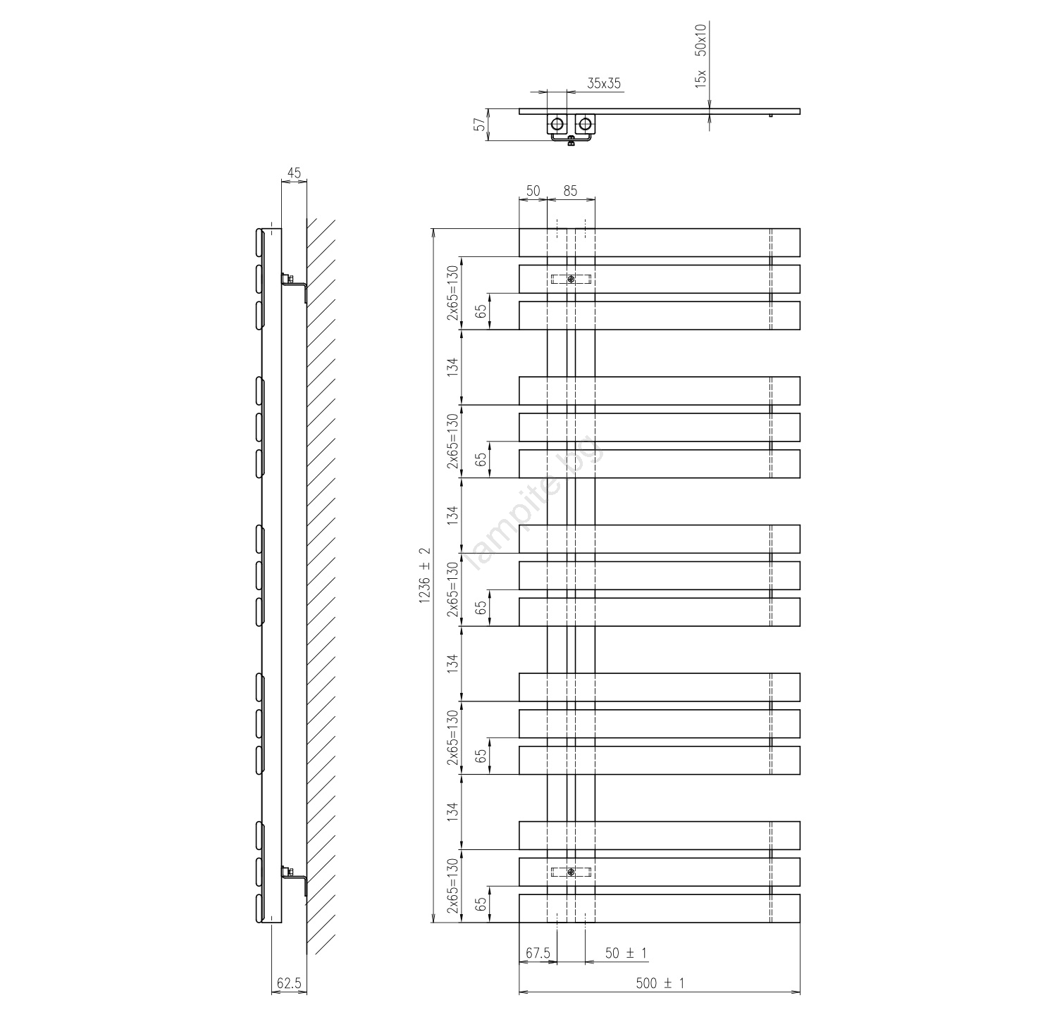 Sapho - Радиатор за баня SILVANA 561W/230V 50x123 cm матово черен