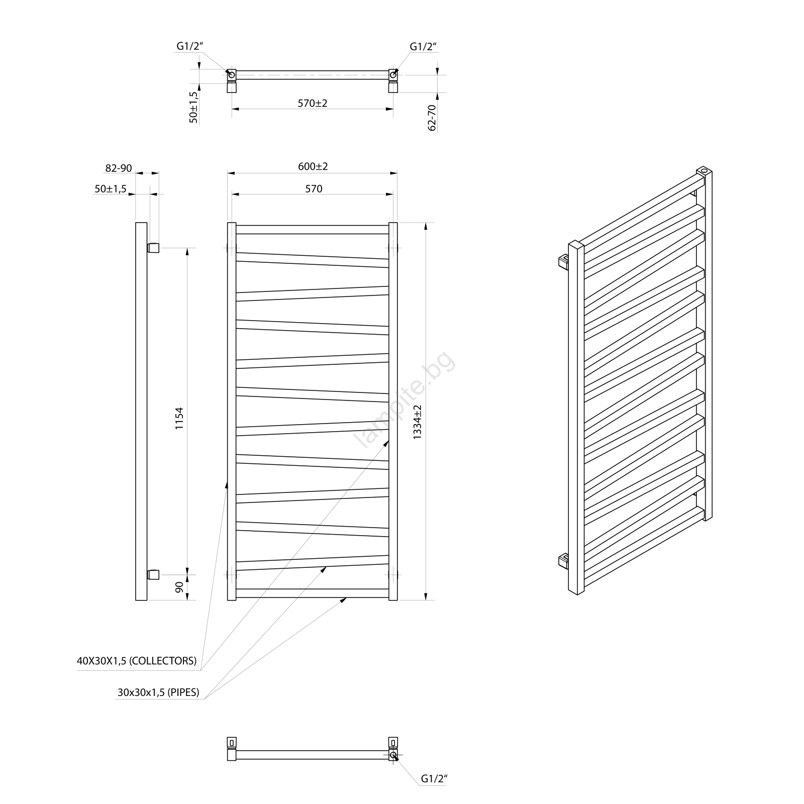 Sapho - Радиатор за баня ZIG, 601 W/230 V, 60 x 133 см, черен