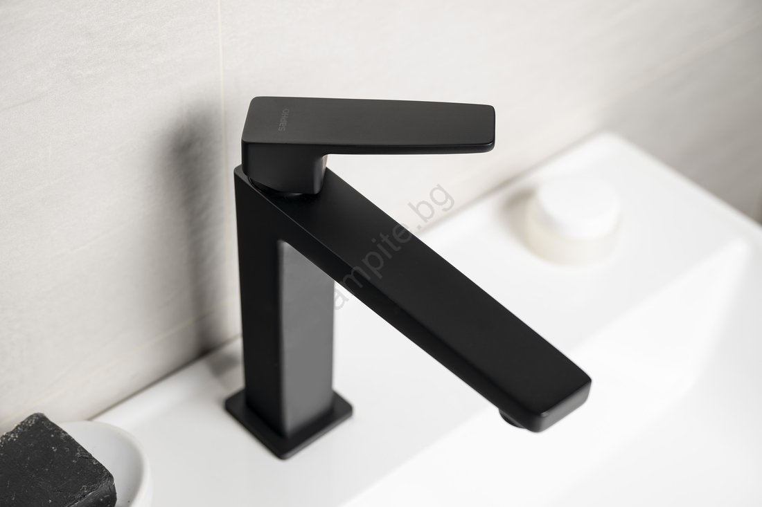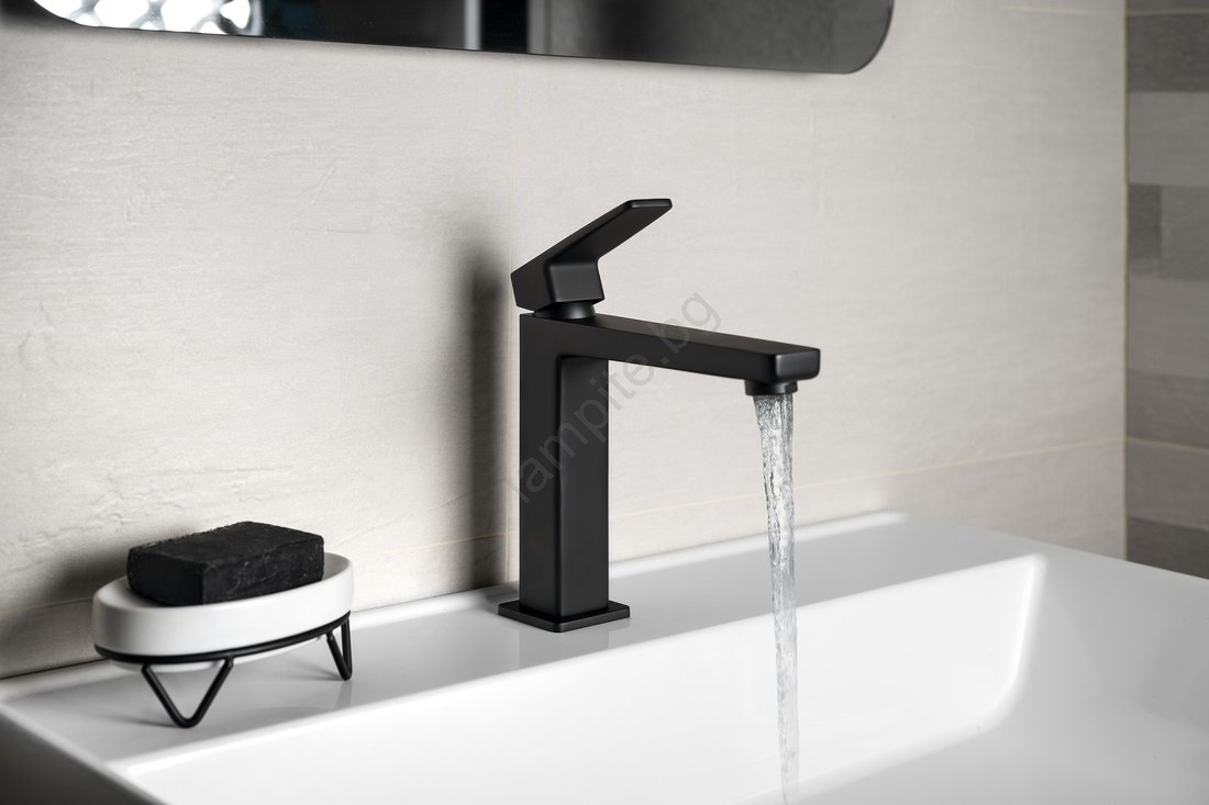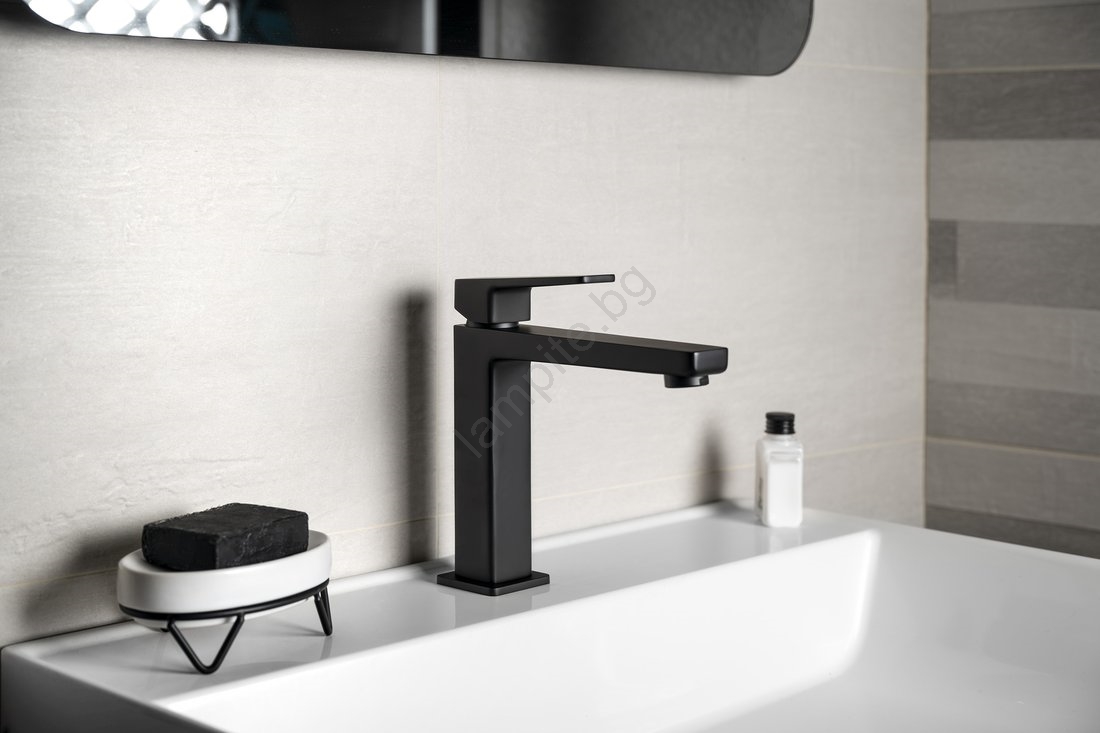 • Този смесител за мивка има модерен дизайн и матово черно покритие.