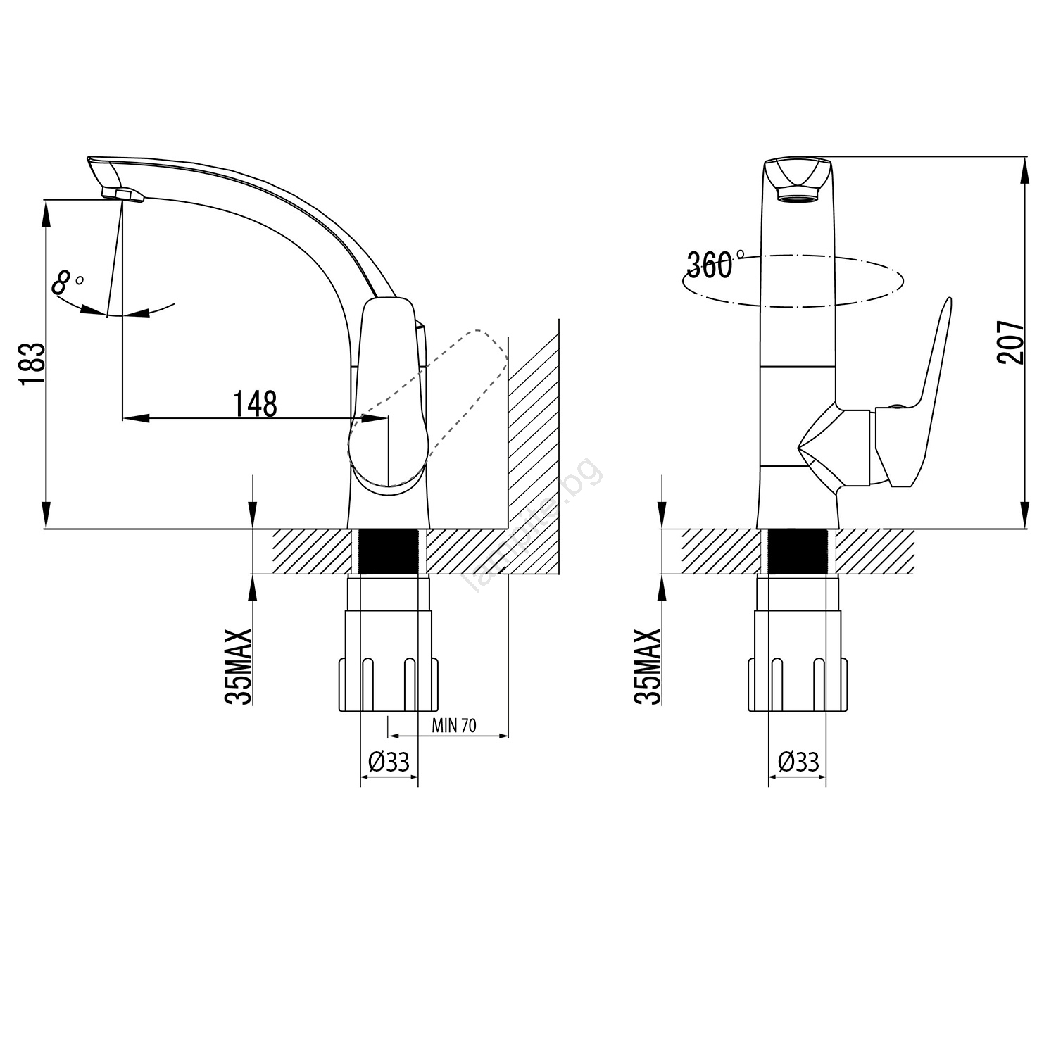 • В серията ще намерите и специални високи смесители за монтаж върху плот.