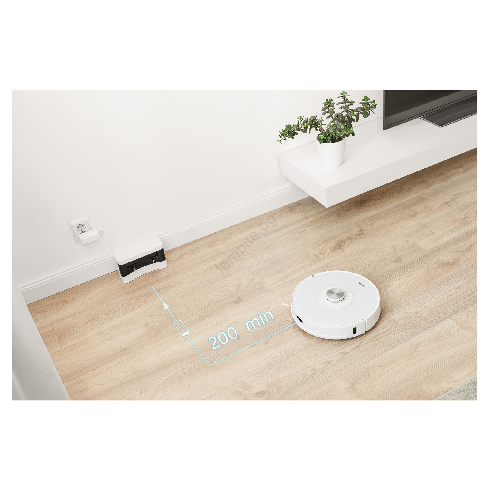 • Благодарение на качествена Li-Ion батерия прахосмукачката издържа до 200 минути с едно зареждане и след приключване на почистването се връща сама в зарядната станция.
