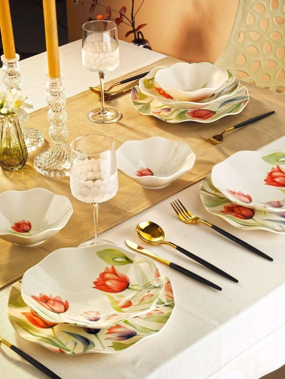 • Елегантен комплект съдове за хранене, подходящ за ежедневни трапези и празнични поводи.