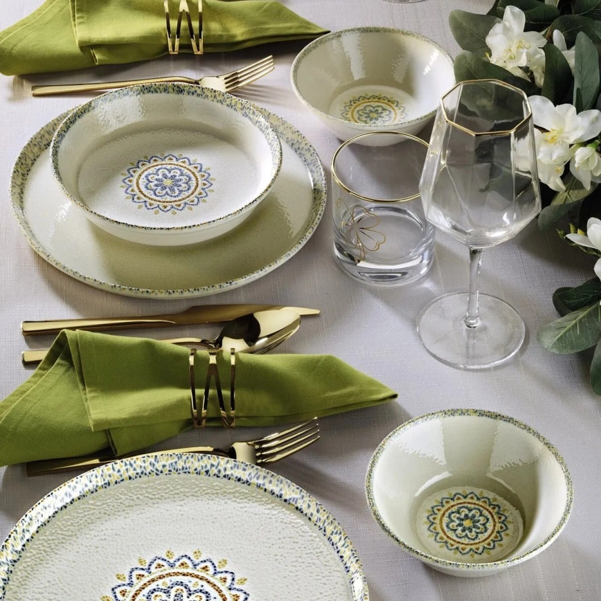 • Елегантен комплект за сервиране, предназначен както за ежедневно хранене, така и за празнични поводи.