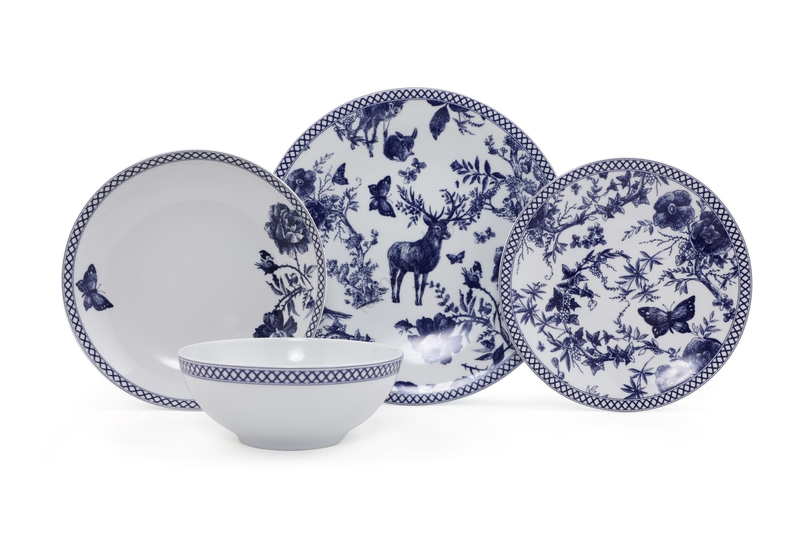 Сервиз за хранене 24 бр. бял/син/порцелан