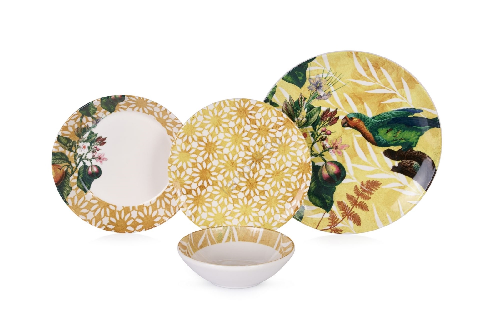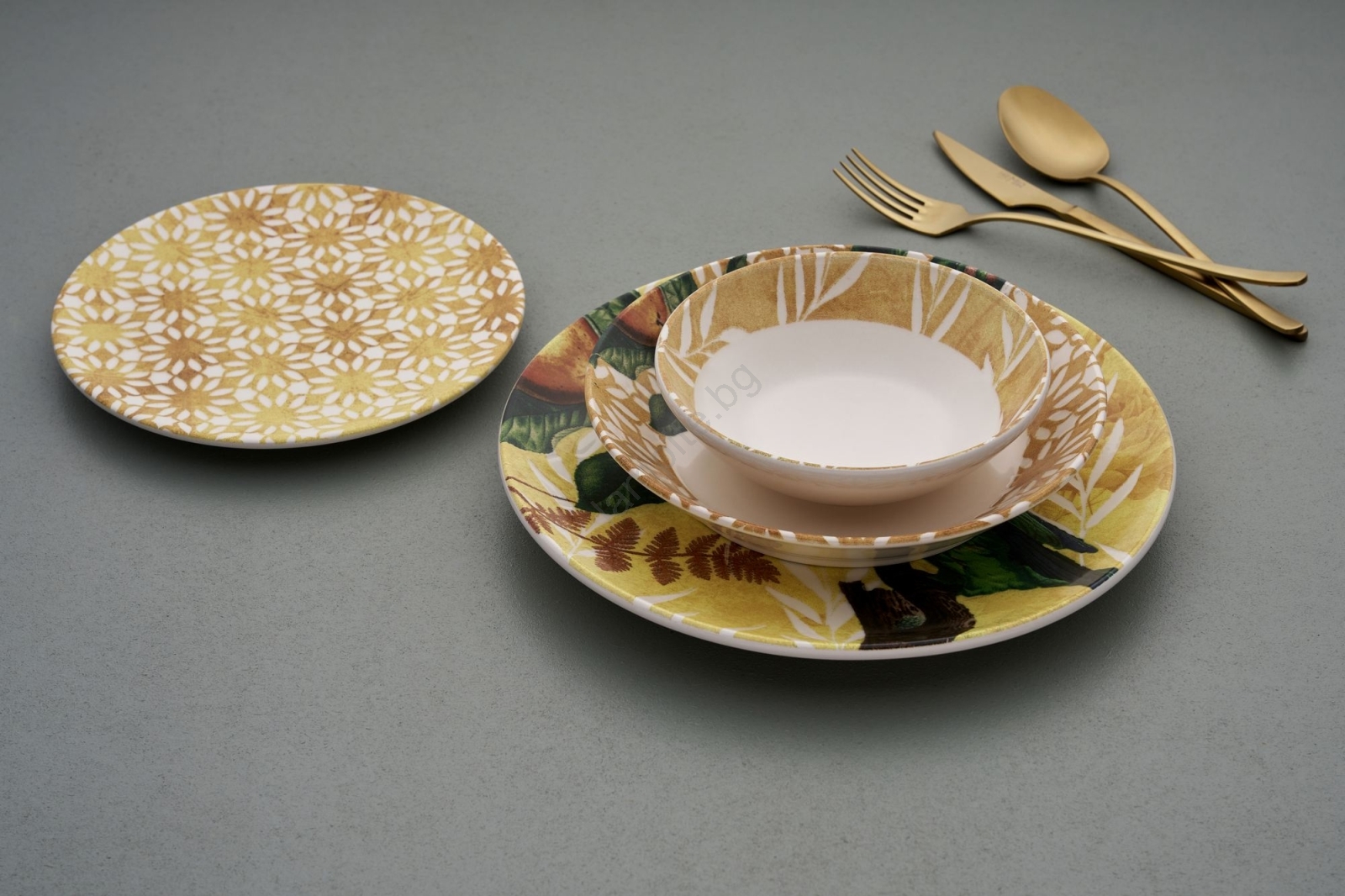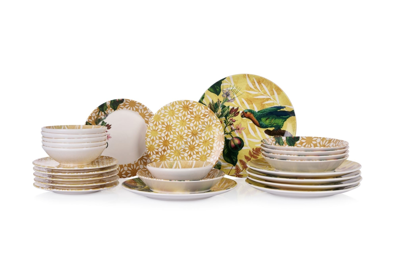 Сервиз за хранене 24 бр. жълто/зелено/бяло/керамика