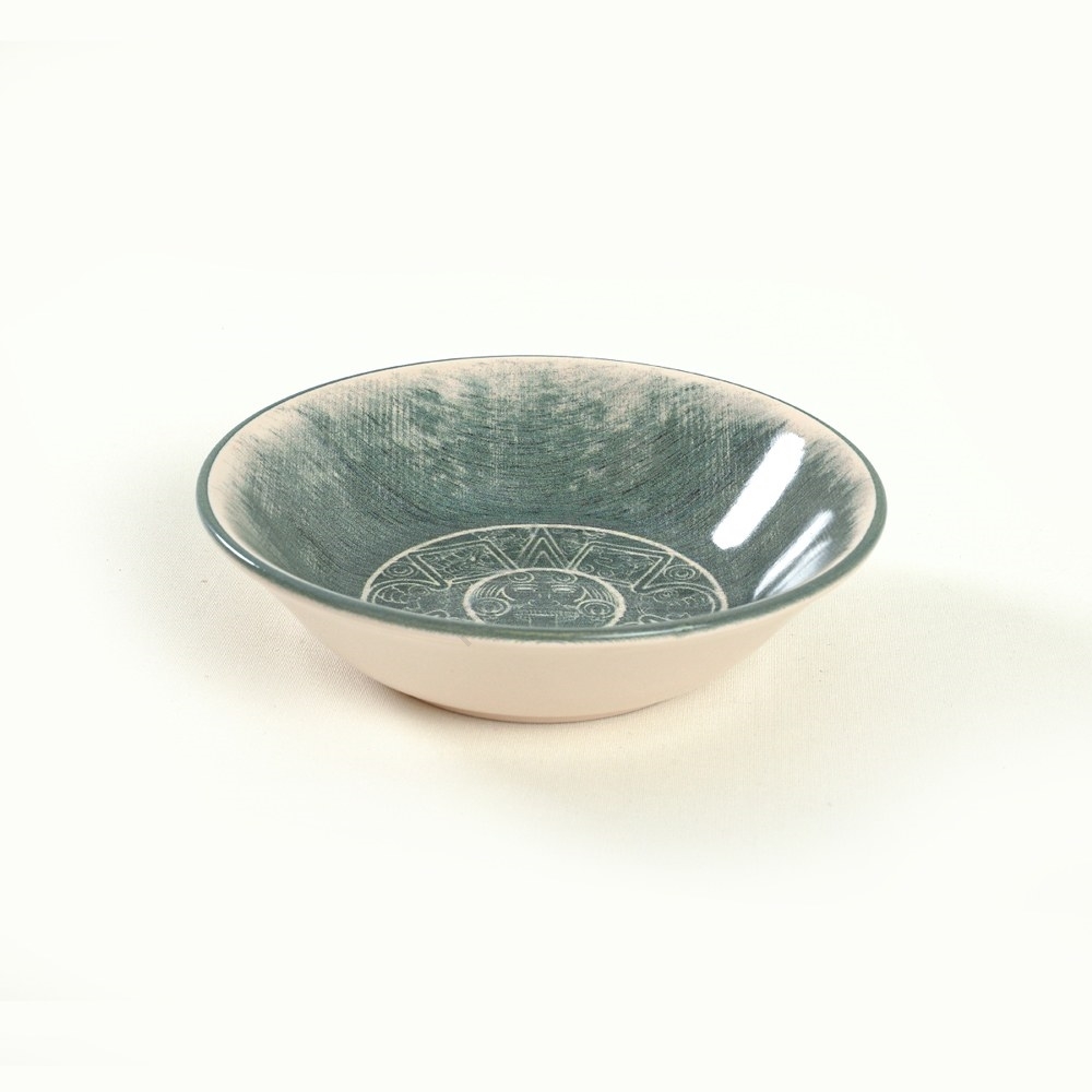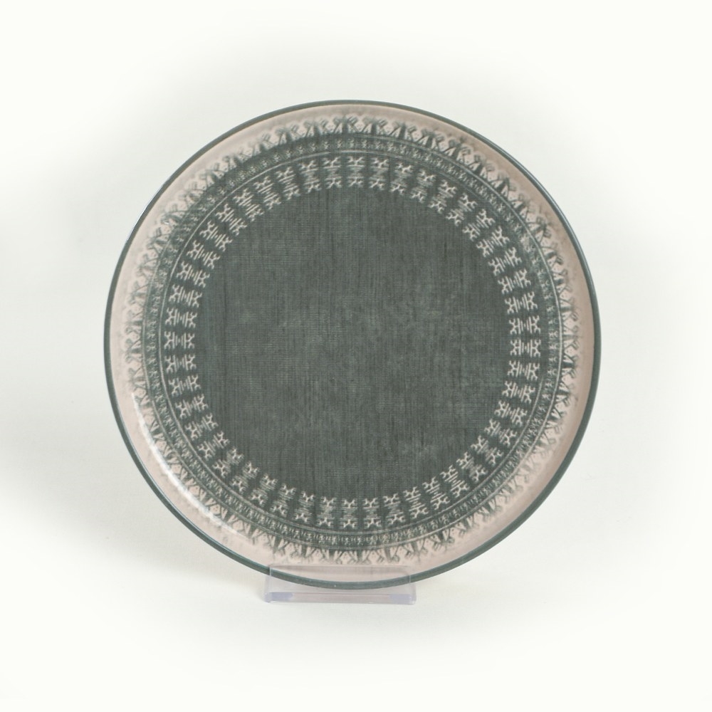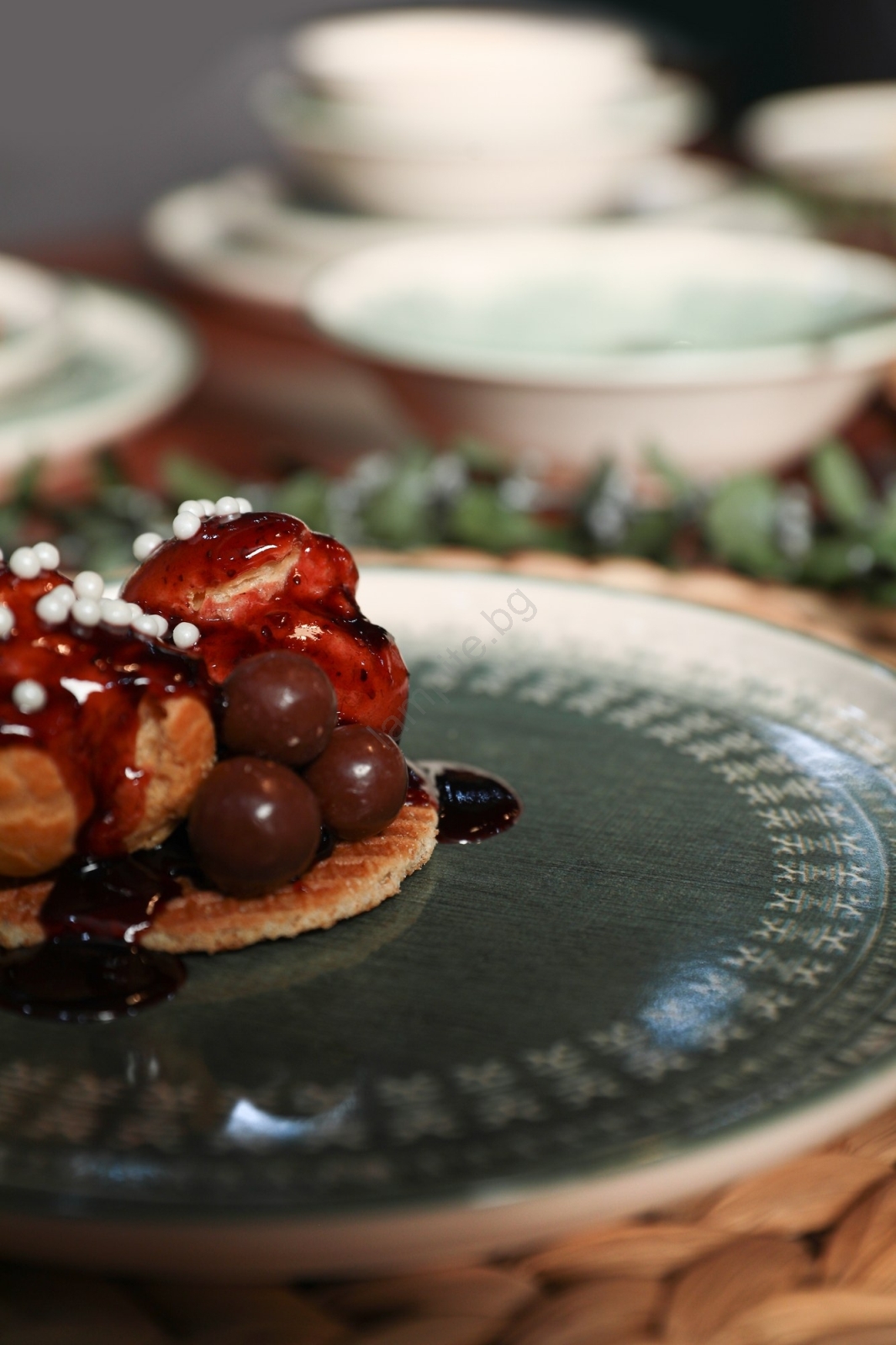 Сервиз за хранене 24 части бежов/зелен/каменна керамика