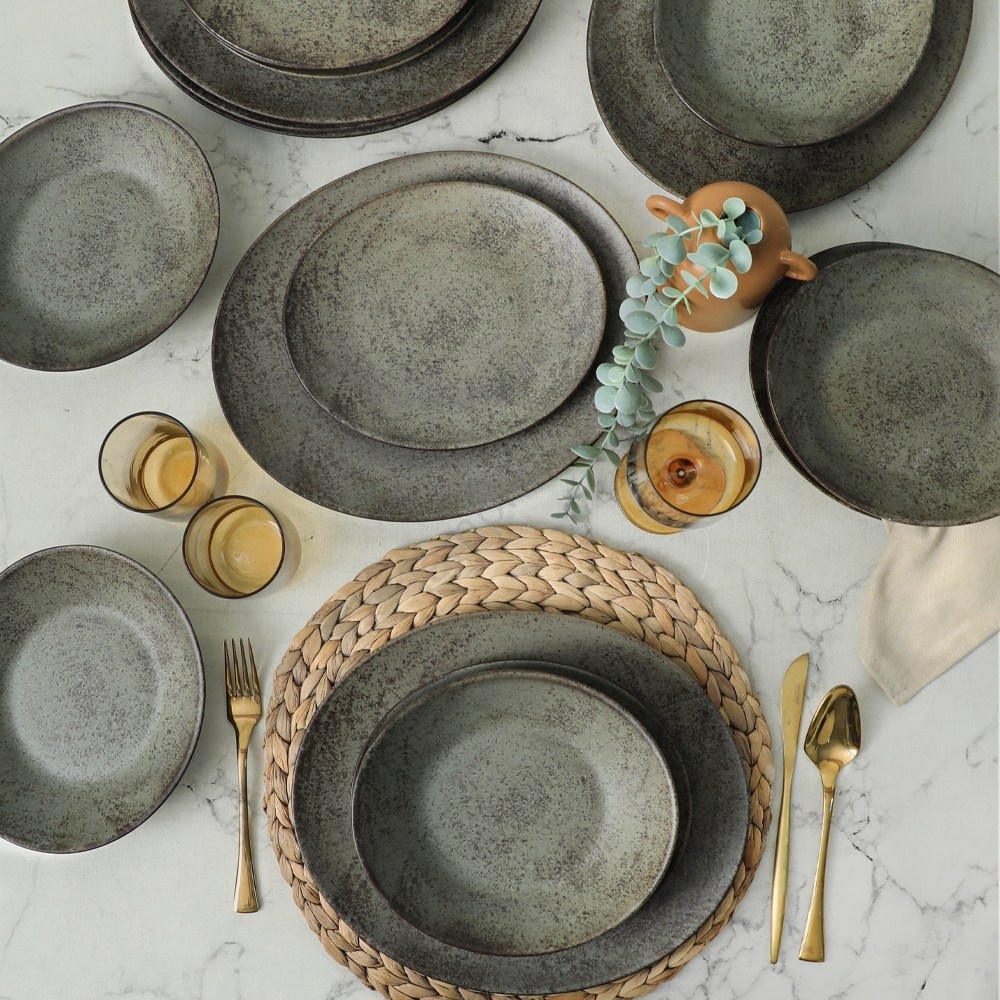 Сет за хранене, 18 части, антрацит/зелен/каменна керамика