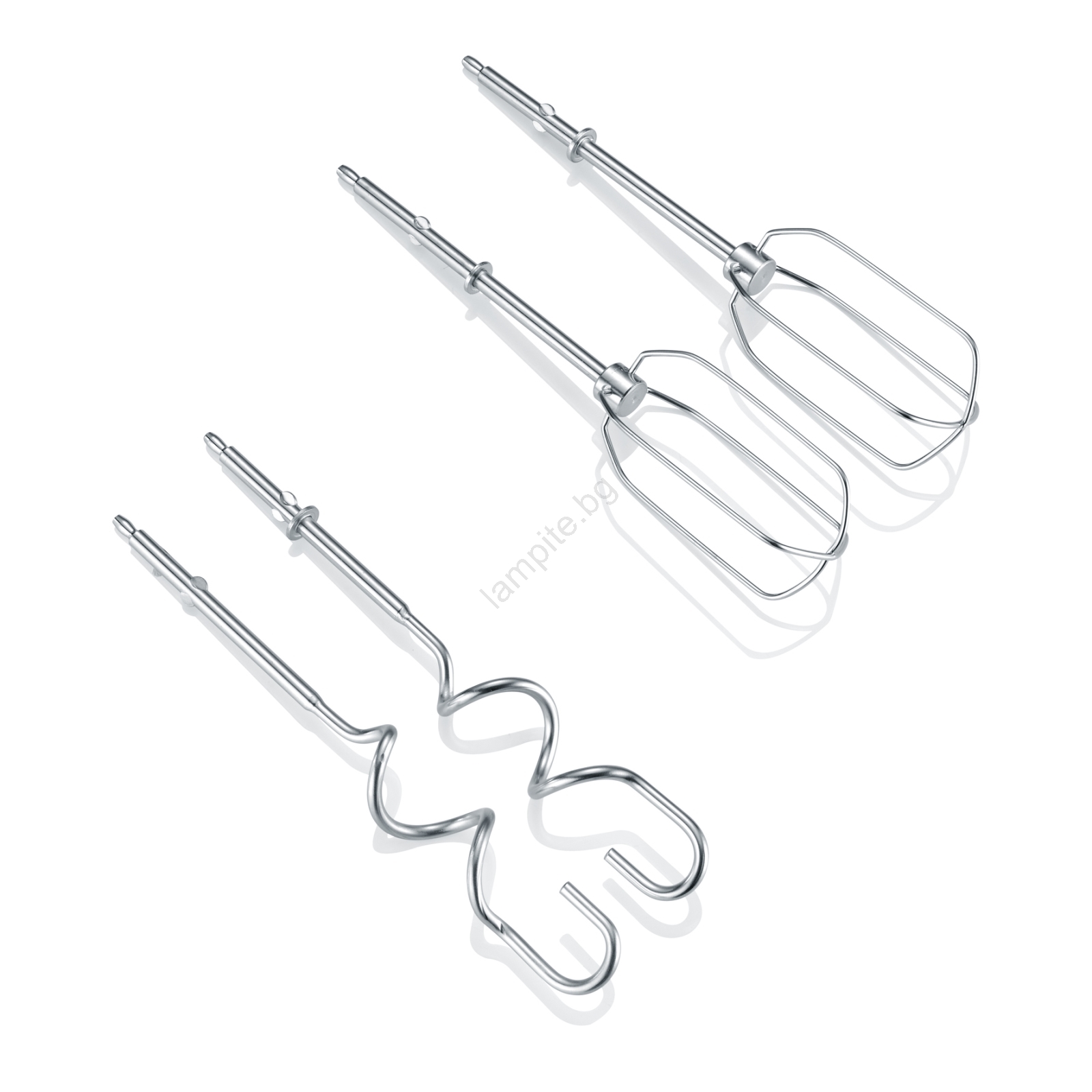• Опаковката съдържа 2 неръждаеми бъркалки и 2 неръждаеми куки за месене.