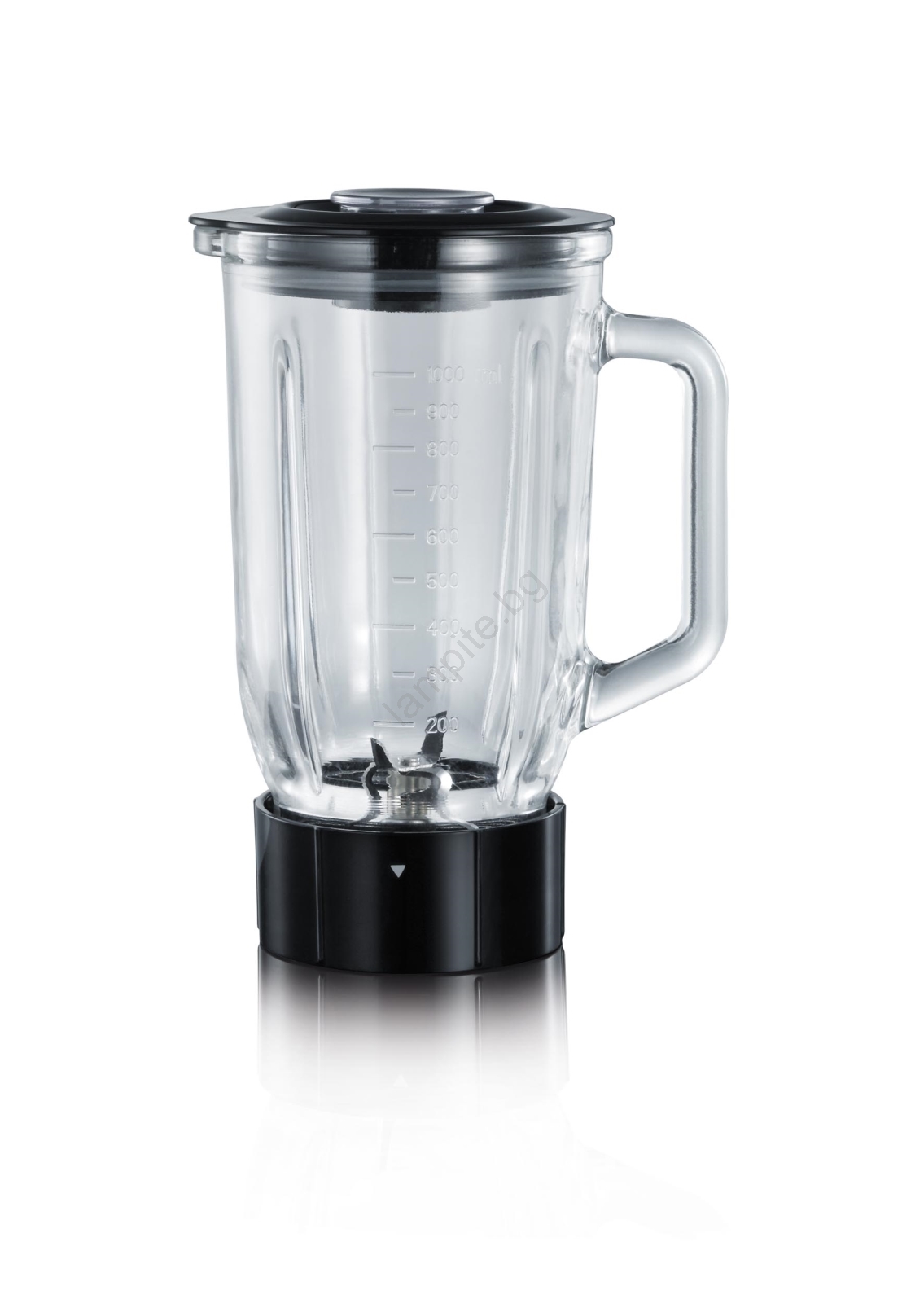 • Блендерът е оборудван с подвижна стъклена купа с излив за лесно наливане.