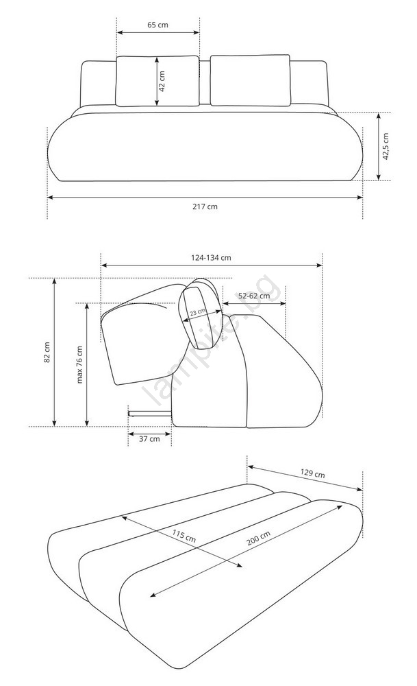 • Дълбочина на седалката 52-62 cm осигурява достатъчно пространство за отпуснато и ергономично сядане.