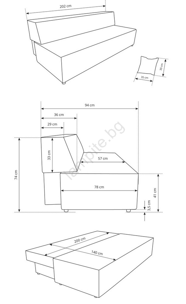 • Елегантни черни дървени крака (височина 16 cm) придават на дивана модерен вид и осигуряват стабилност и дълготрайност.