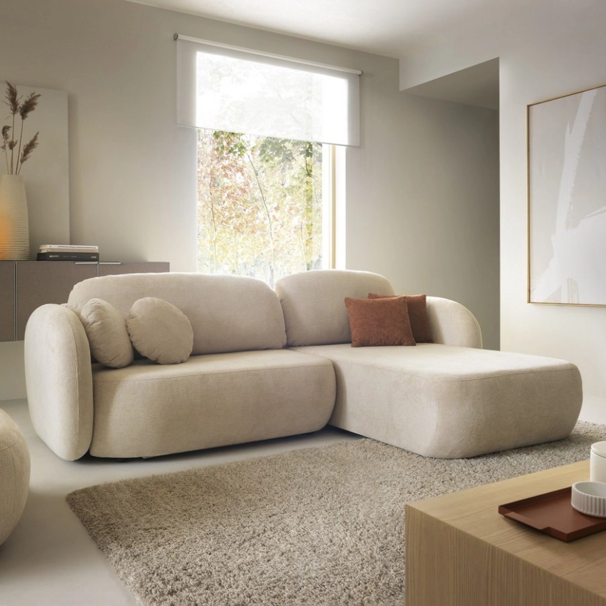 • Ъглова разтегателна гарнитура тип L OLBIA с ракла, дясна, бежова