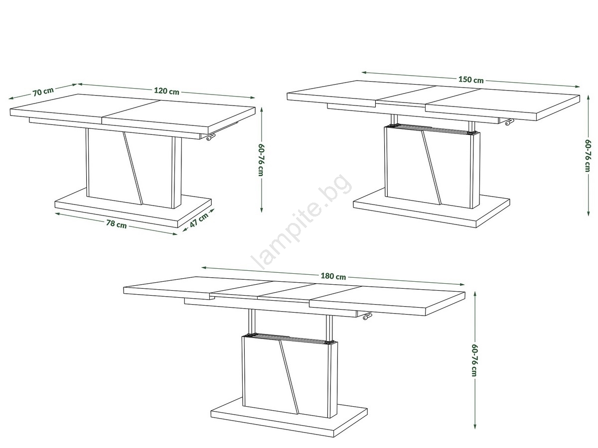 • Масата има функция за регулиране на височината на повдигащия плот.