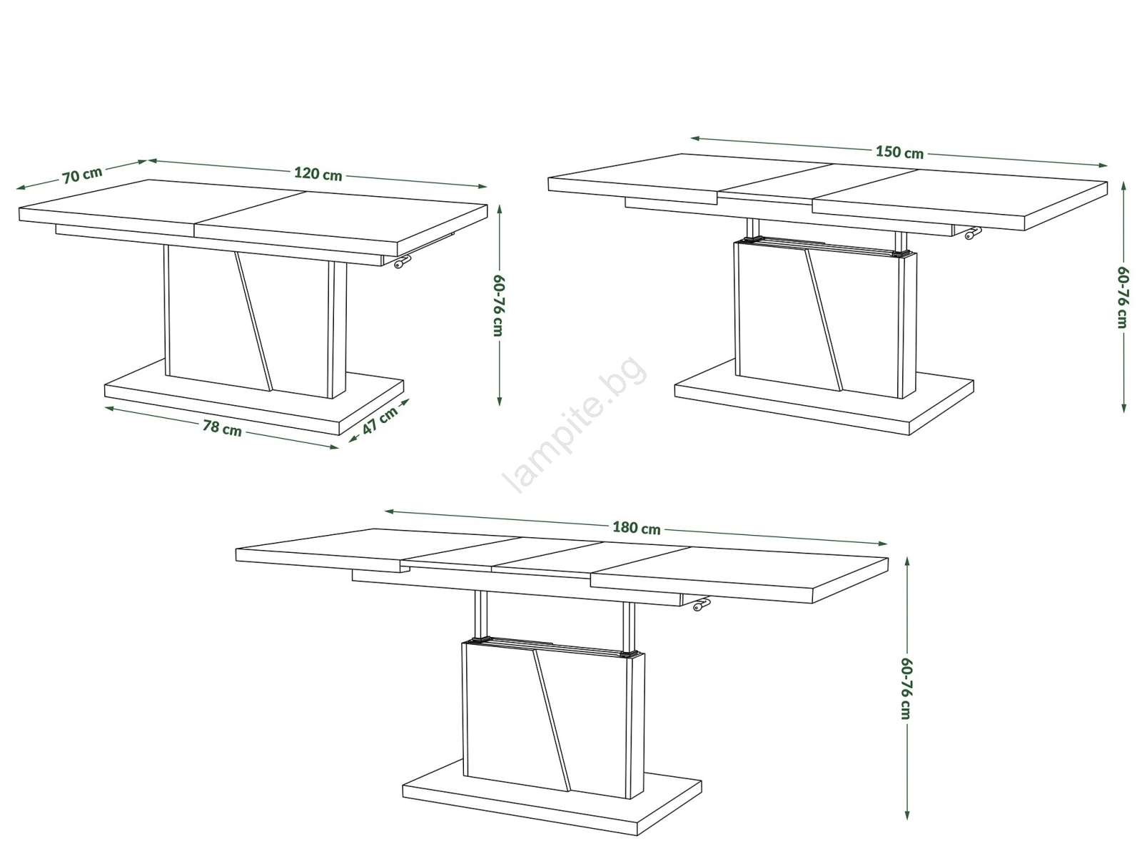• С помощта на две вложки по 30 см плочата може да се увеличи до 150 или 180 см.