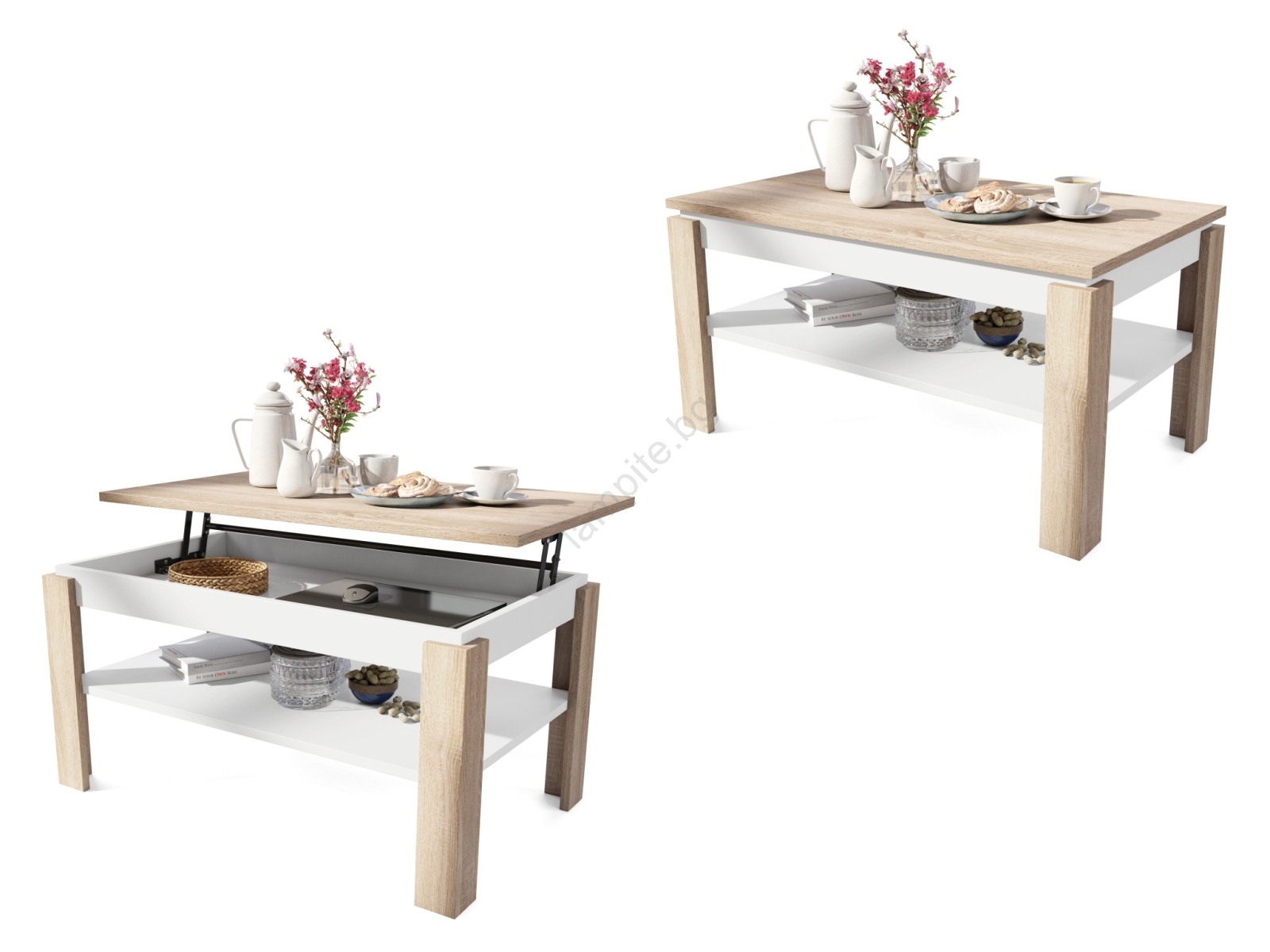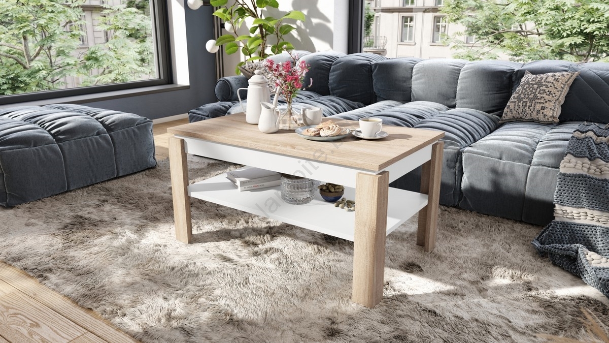 • Разтегателна холна маса с повдигащ плот и полица ADEN дъб сонома/бяла