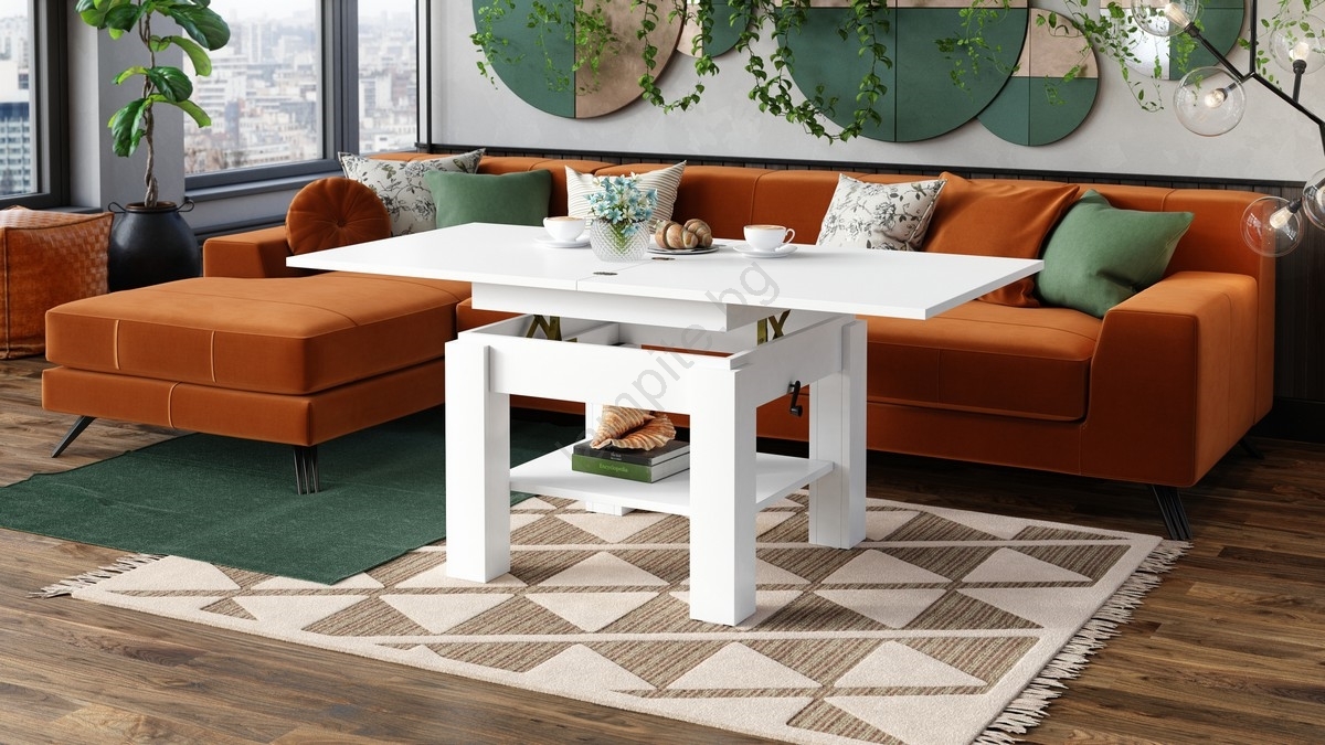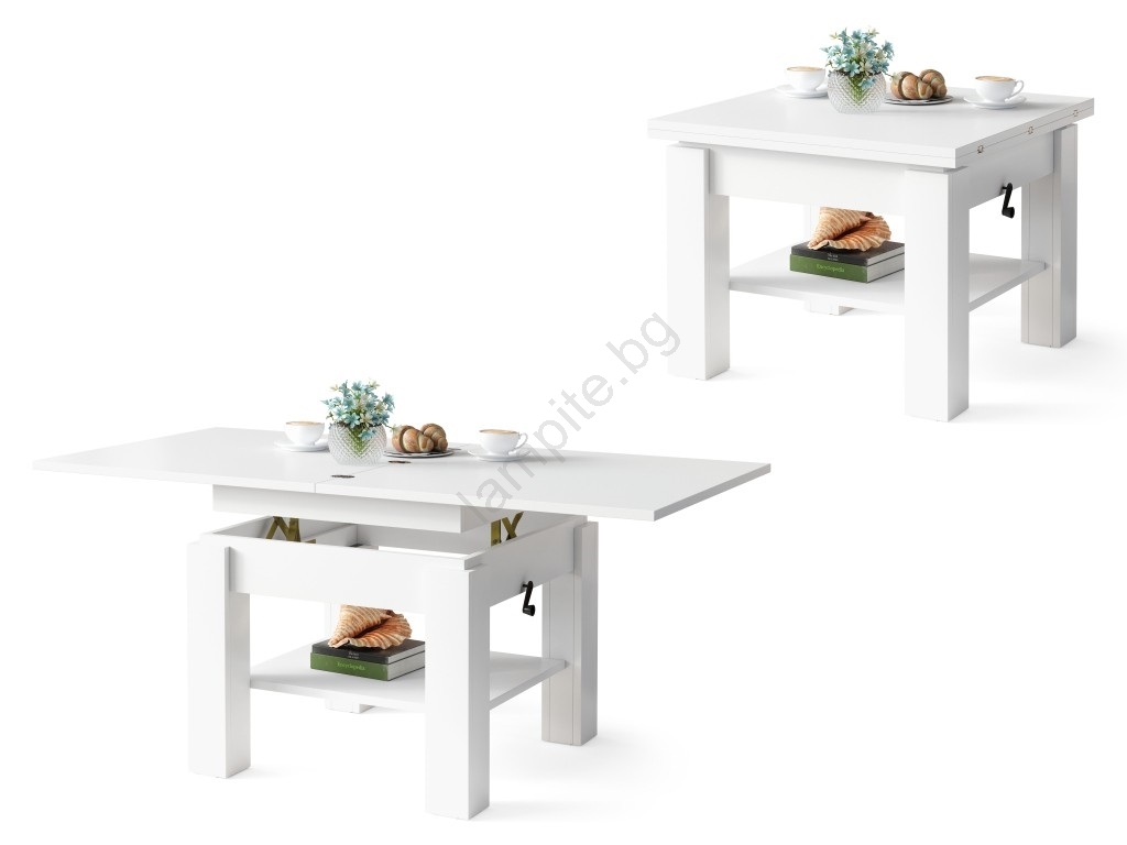 • Разтегателна холна маса с повдигащ плот CALEB 75/150x75 см бяла