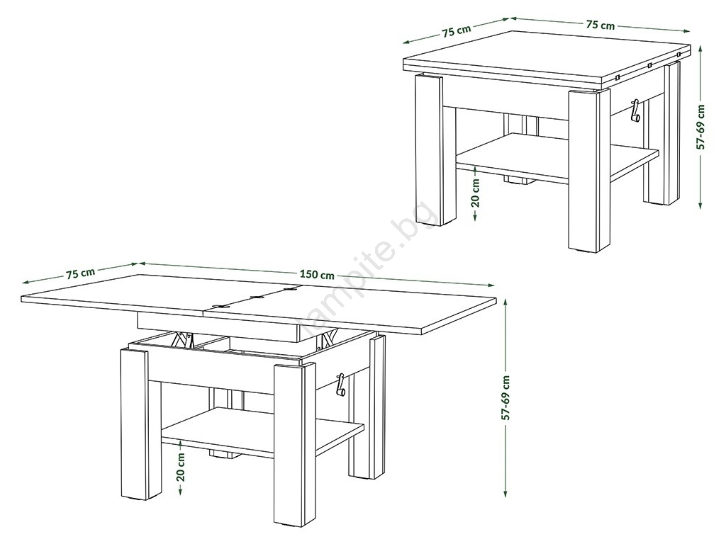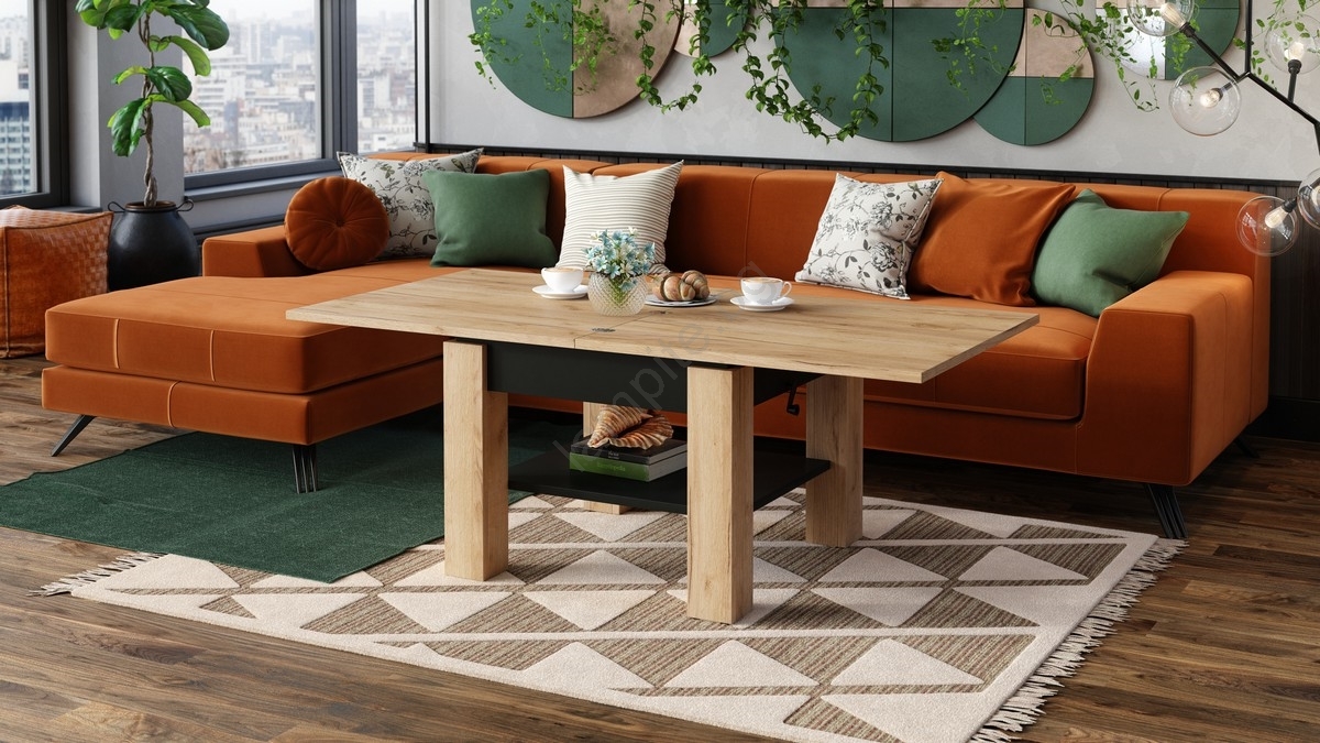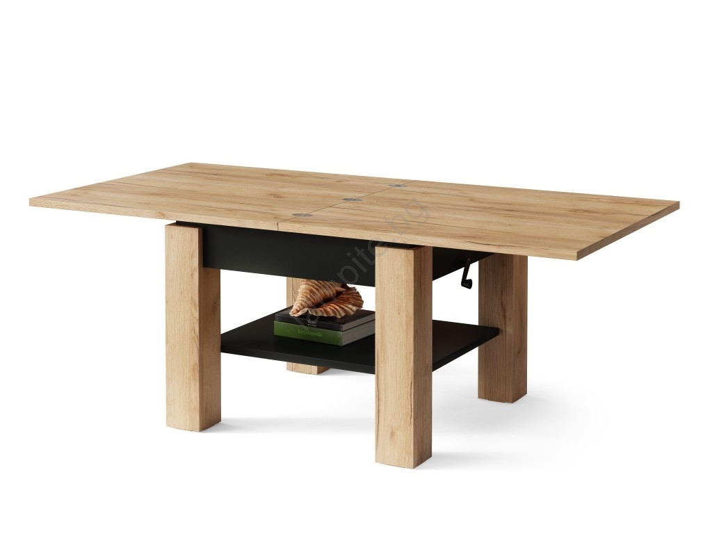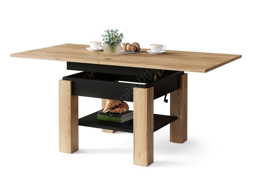 Разтегателна холна маса с повдигащ плот CALEB 75/150x75 cm дъб крафт/черен