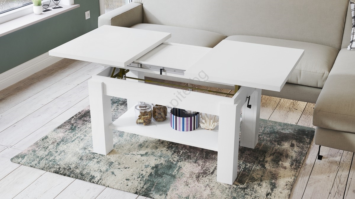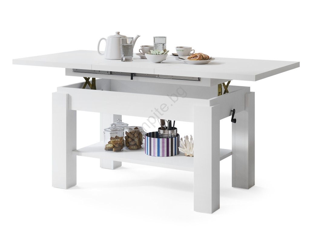 • Разтегателна холна/трапезна маса с рафт ADONIS бяла