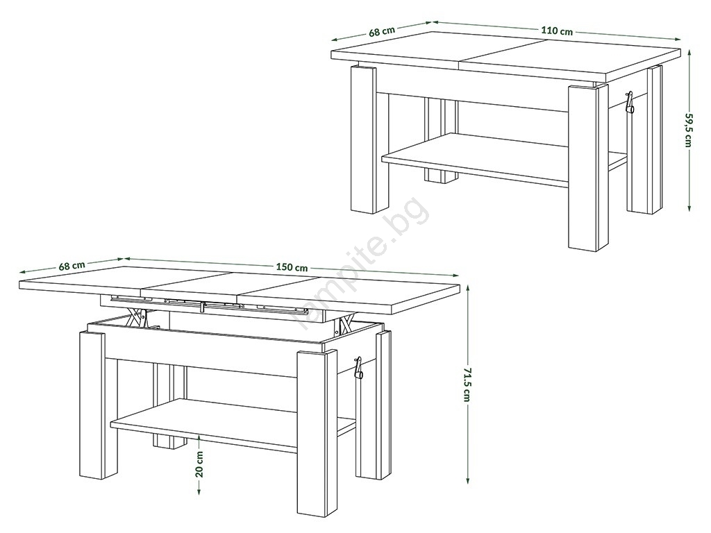 • В зависимост от вашите нужди този модел може да служи като малка холна масичка или като трапезна маса, на която можете да се храните или да празнувате семейни поводи.