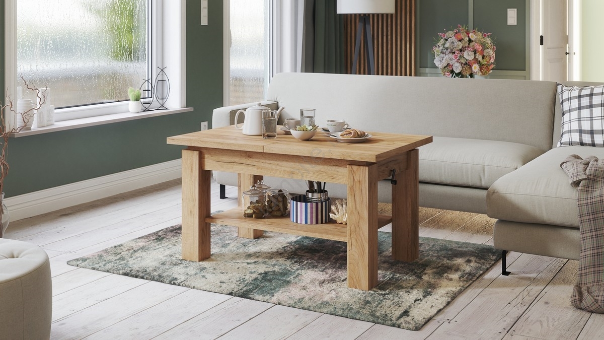 Разтегателна холна маса с полица ADONIS 110/150x68 cm дъб крафт