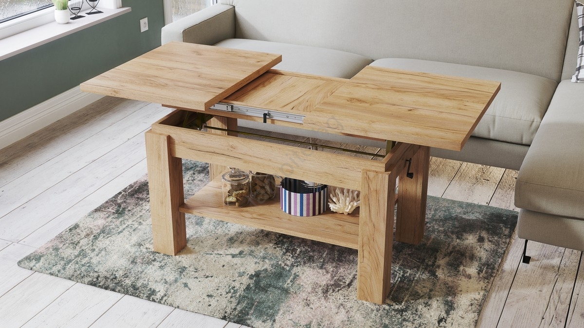 • Разтегателна холна/трапезна маса с рафт ADONIS дъб крафт