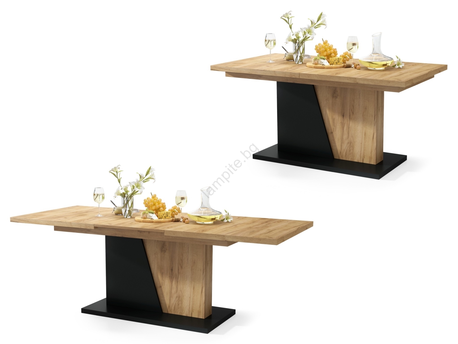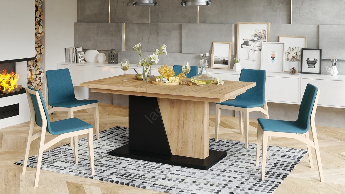 • Разтегателна трапезна маса NINO дъб крафт/черен