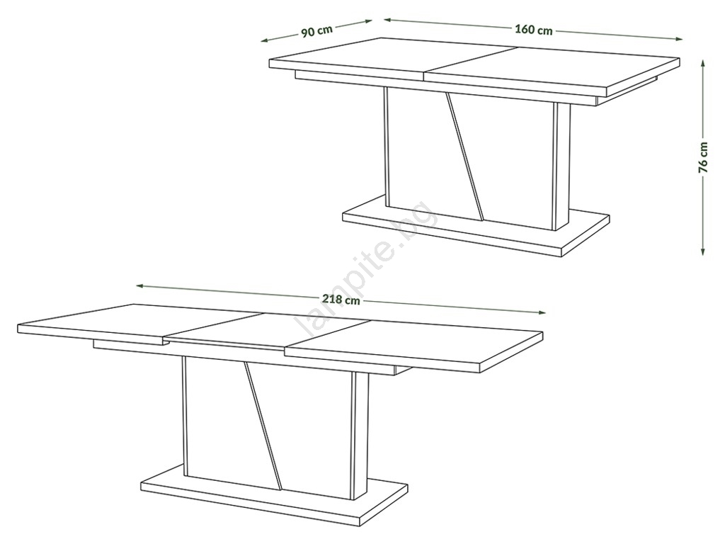 • С помощта на една вложка от 58 см плотът може да се разшири до 218 см (благодарение на качествени синхронни релси).