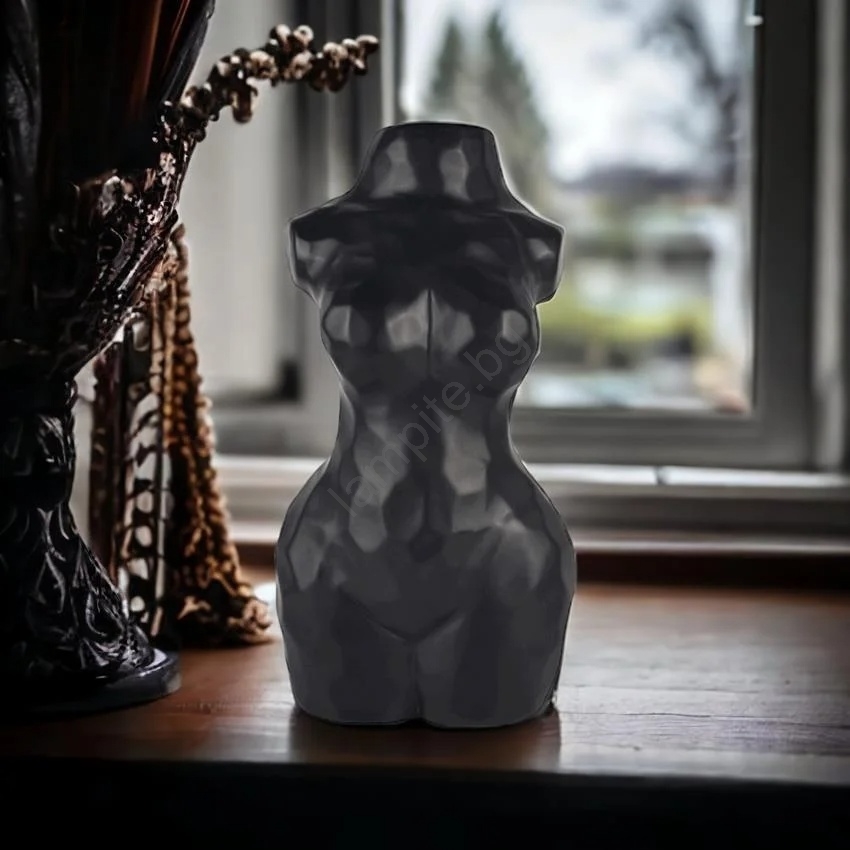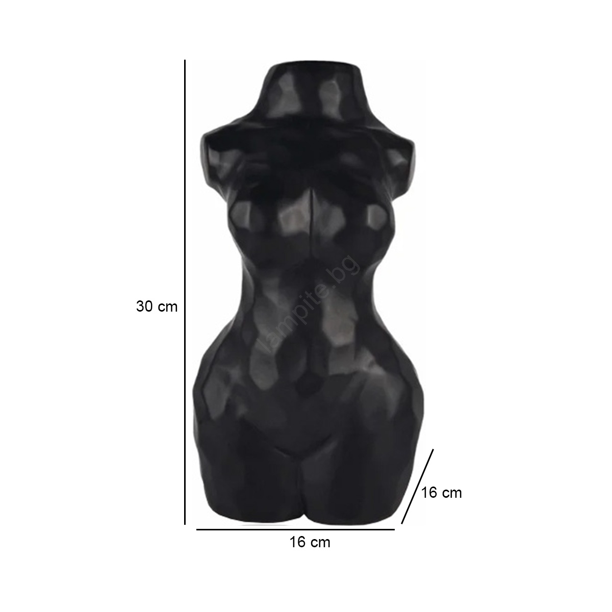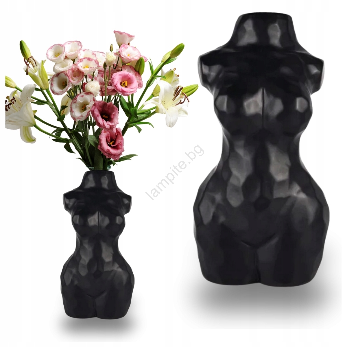 • Декоративна ваза за цветя във формата на женска фигура в елегантно черно.