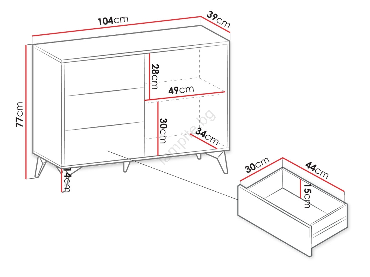 • Изработен от здрава ламинирана плоскост с дебелина 16 мм.