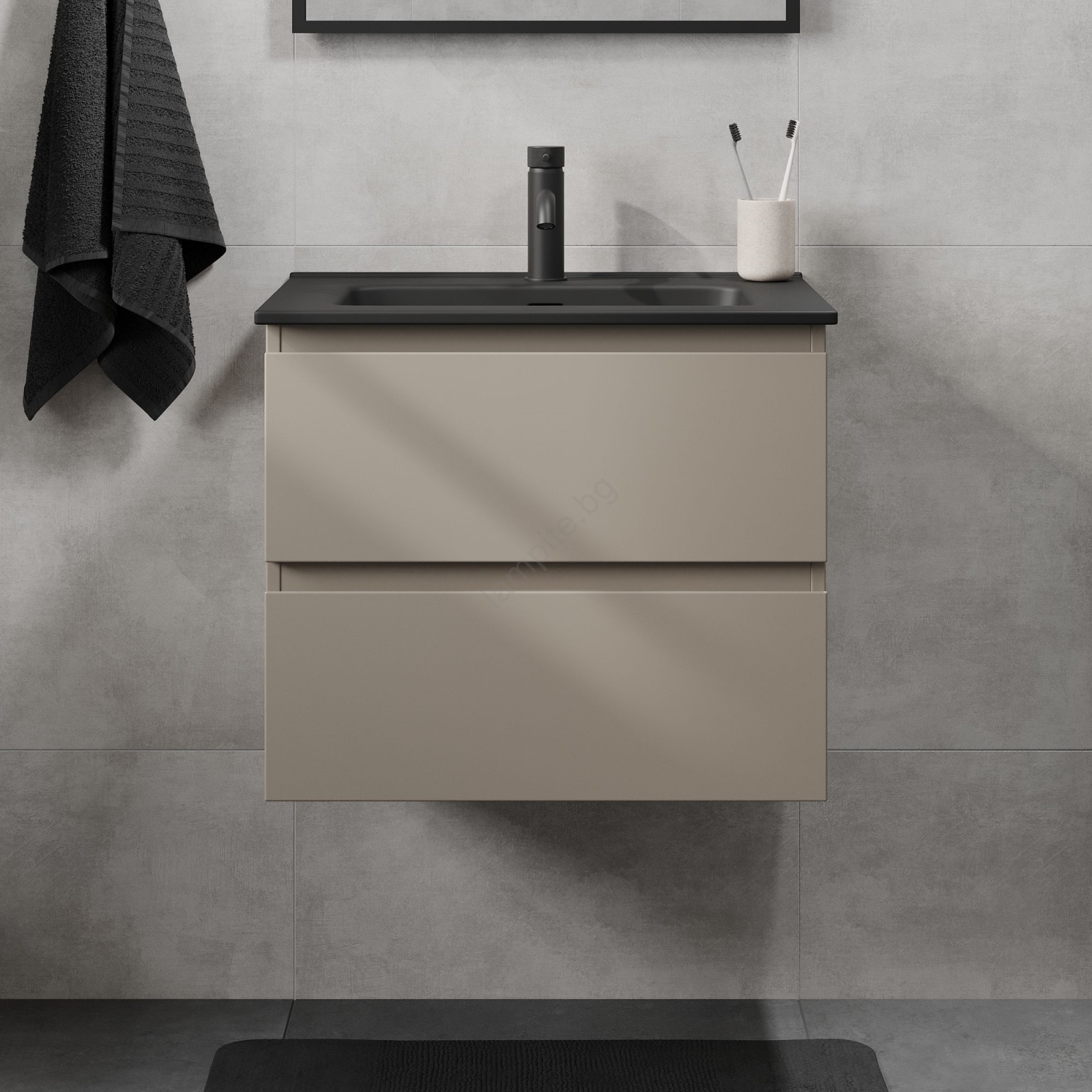 • За постигане на цялостен вид препоръчваме подходящ висок шкаф, който осигурява допълнително място за съхранение и допринася за цялостния стил.