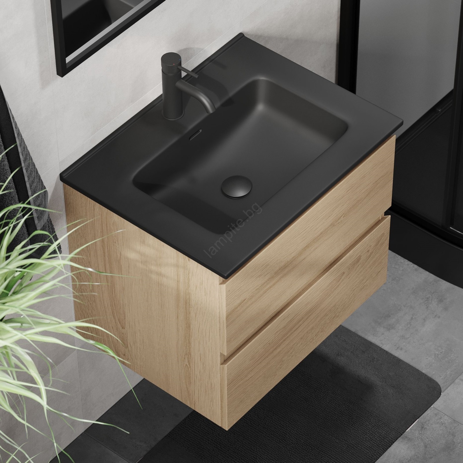 Шкаф за баня с мивка CONOR, 61 см, дъб/черен