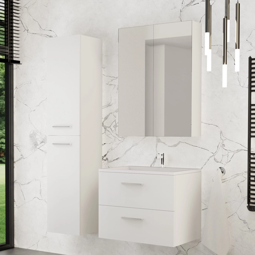 Шкаф за баня с мивка KATE + огледален шкаф + стенен шкаф бял