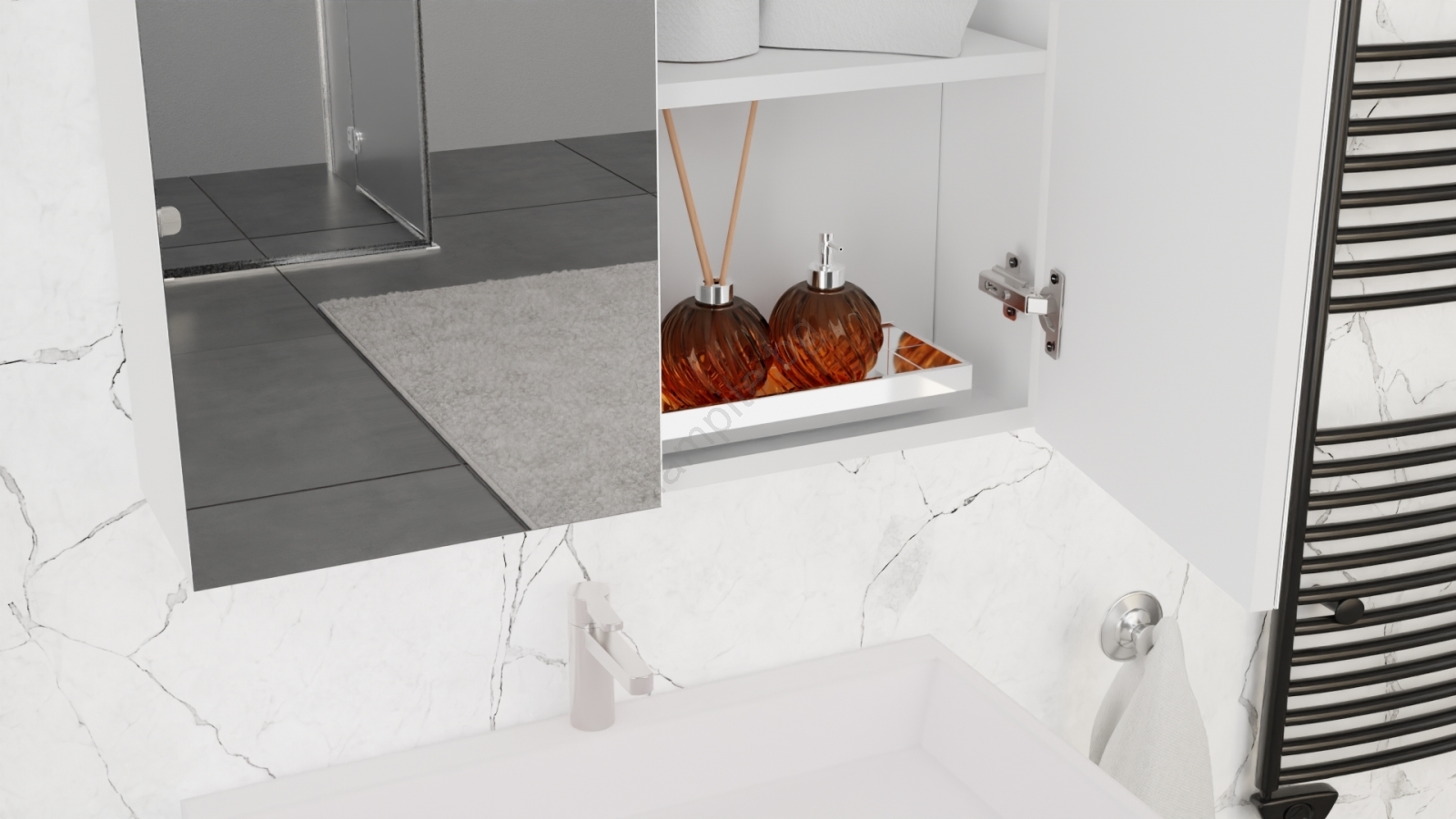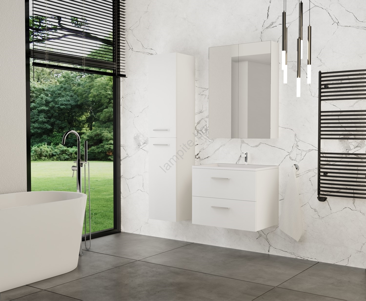 • SET KATE - Елегантен комплект за баня с мивка, огледален шкаф и стенен шкаф.