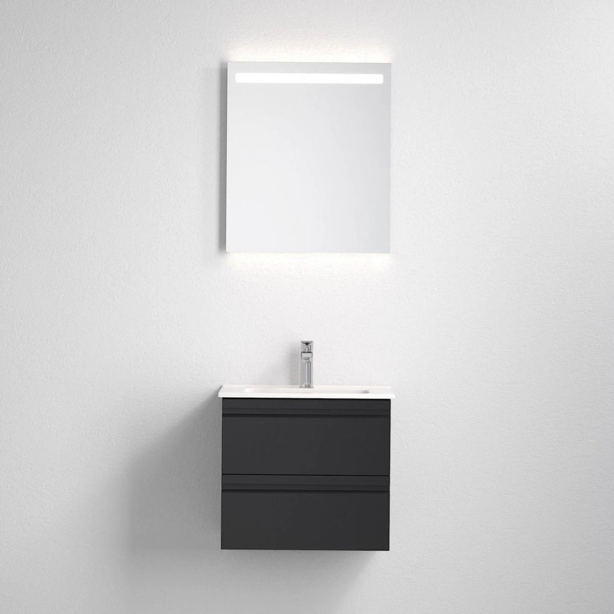 • Елегантен шкаф за баня с мивка и LED огледало.