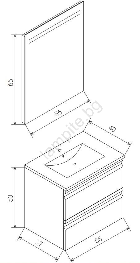 • Размери на долния шкаф: 50 x 40 x 56 cm.