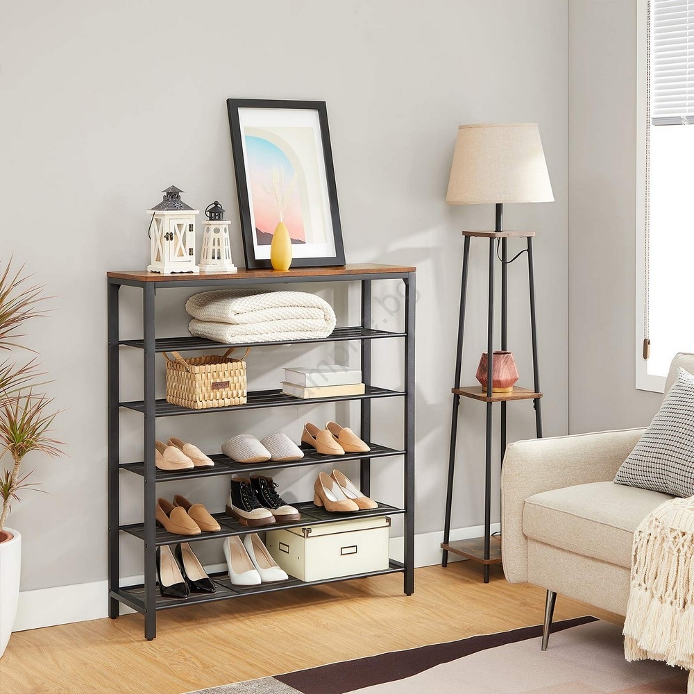 • Благодарение на тясната си форма тази обувница с 6 нива заема малко място на пода и същевременно предлага достатъчно място за съхранение.