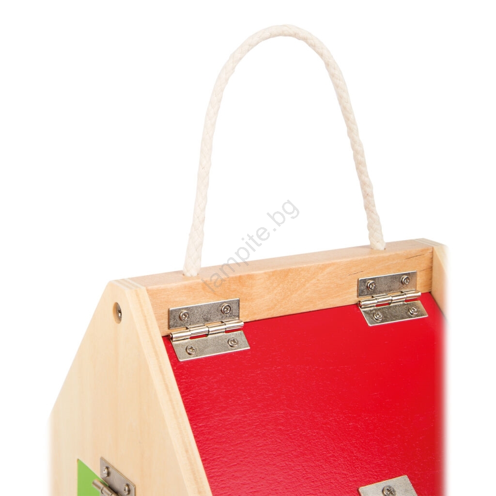 • Висококачествено изработена дървена къщичка, която развива моториката на децата.