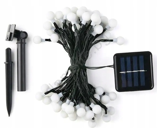 Соларен LED декоративен гирлянд — 50 LED / 8 режима, 500 mAh, 9,5 m, IP67, топла бяла