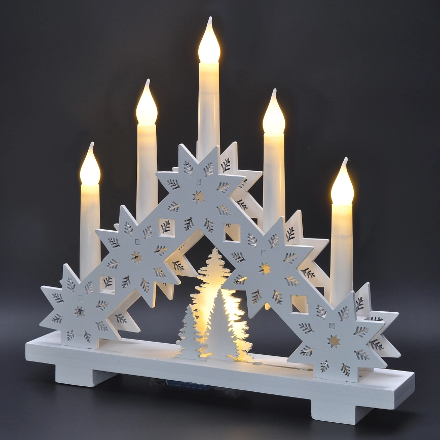 LED Коледен свещник 5xLED/2xAA топло бял