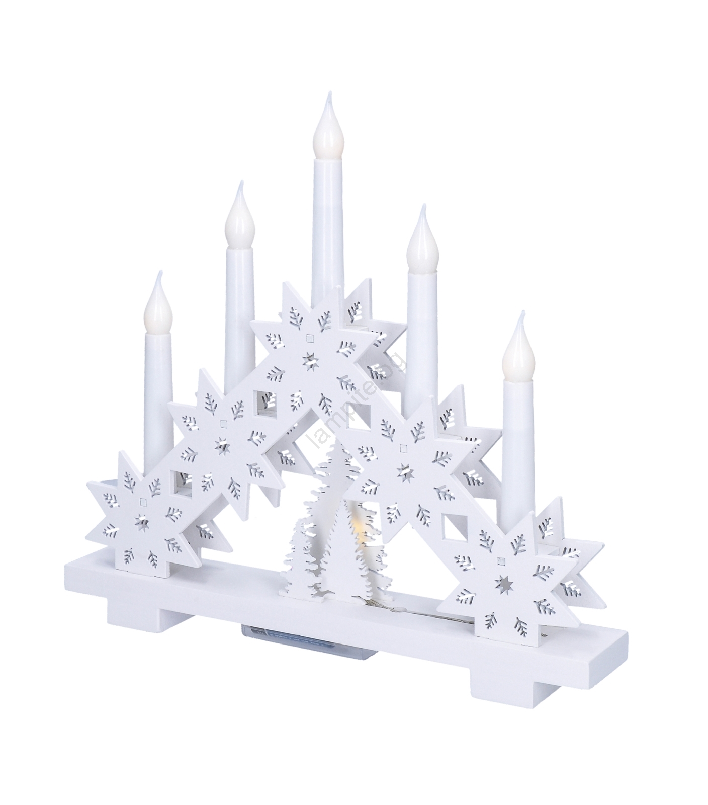 • LED коледен дървен свещник с декорация на звезди.