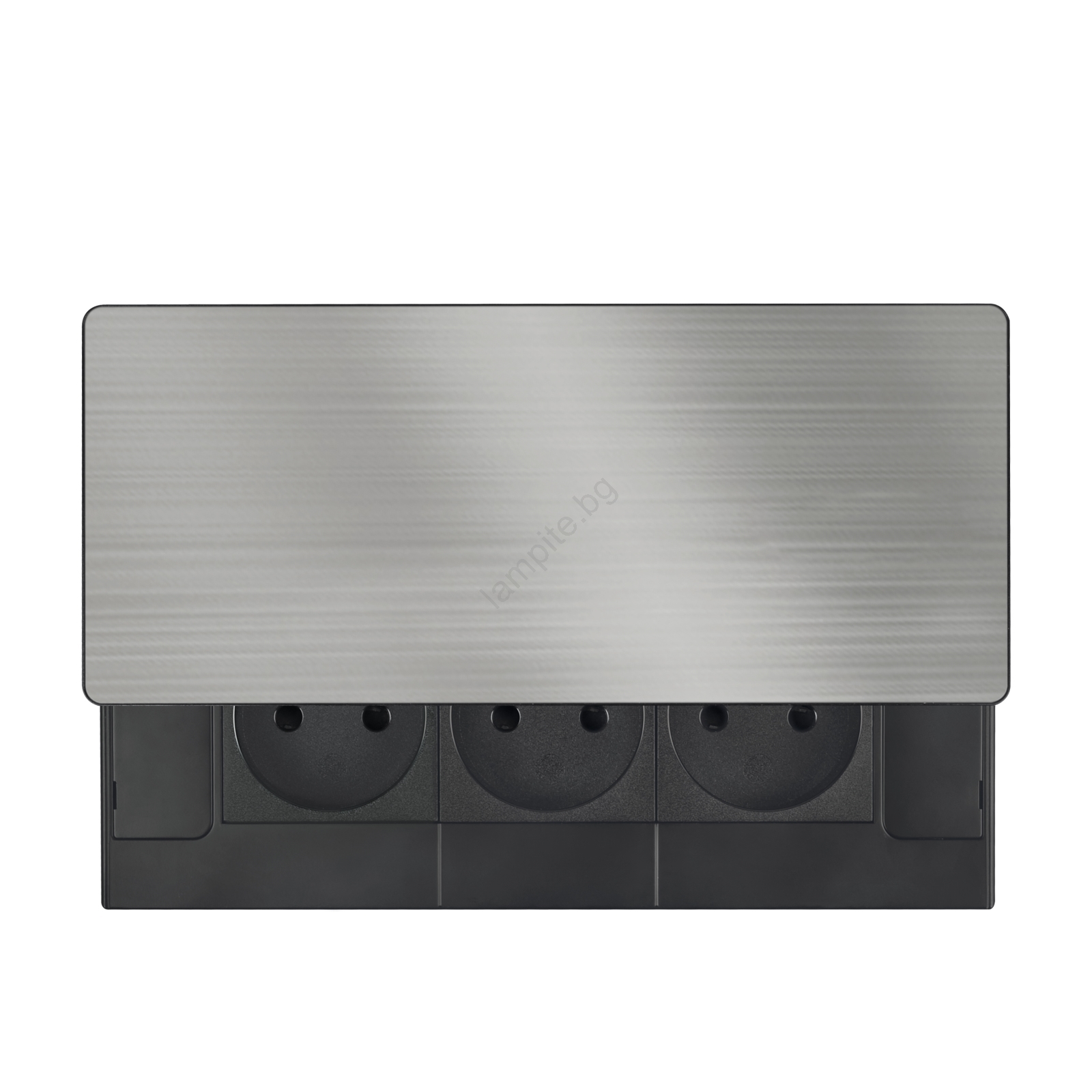 • Горният капак е от матова тъмна неръждаема стомана (INOX) и има плъзгащ механизъм, който защитава гнездата от прах и замърсявания.
